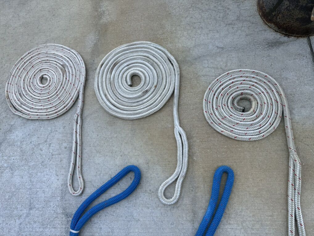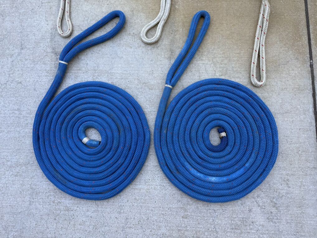 Dockline or mooring rope sea dog brand Blue 20’ X 3/4” $60 each 1 white 17’ X5/8” $25 1 white 22’ X 1/2” $25 1 white 11’ X 1/2” $10