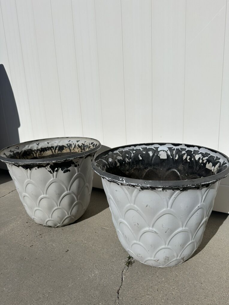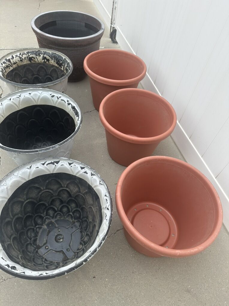 Please read before messaging. Lots of different size planter / flower pots in good condition. They are washed & ready to go Great for gardening or planting flowers in your outdoor, patio or Garden Size up to 15” Tall - 22.5 Tall The tallest one is 22.5 Wide x17.5 Deep Asking $28 Others are around 18” W x 15 “ Asking $22 each They have holes in them already. I also have few smaller ones as well if you need more. Serious inquiries only