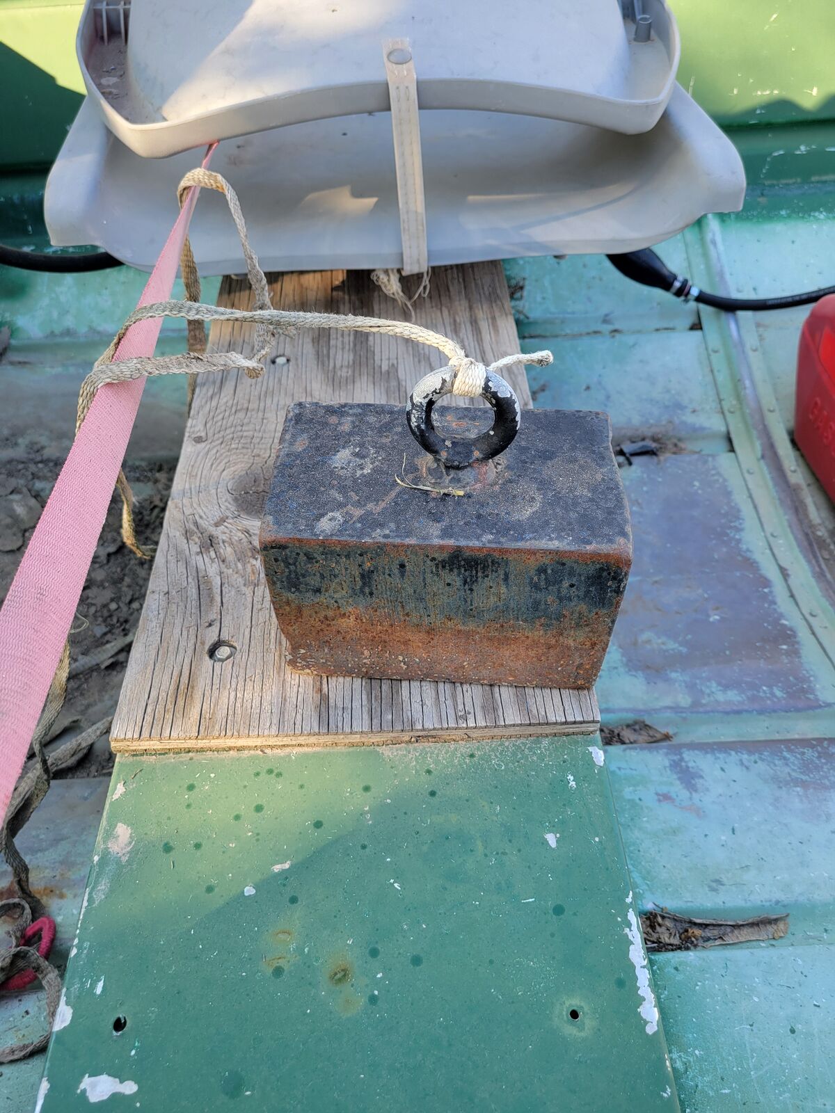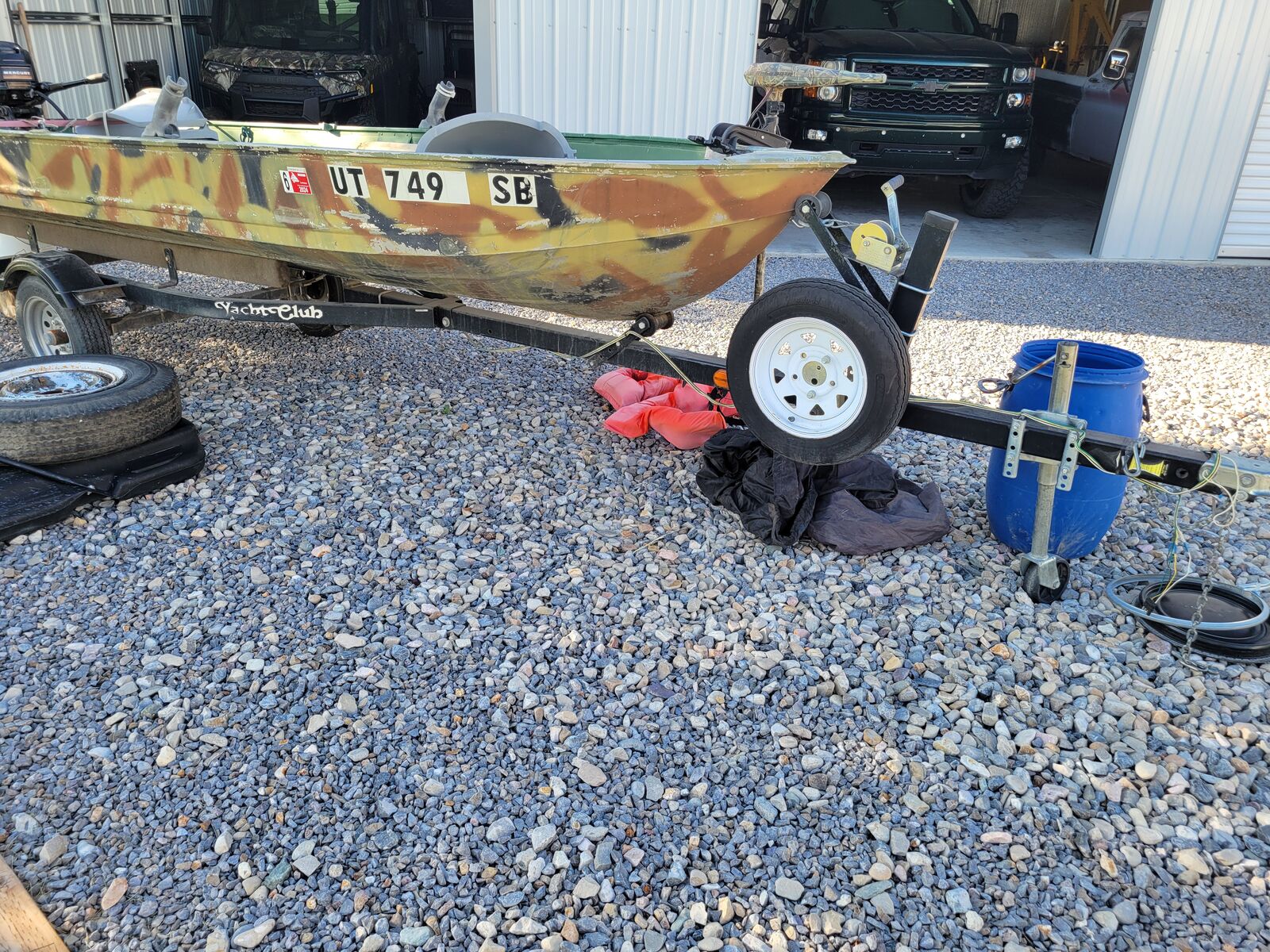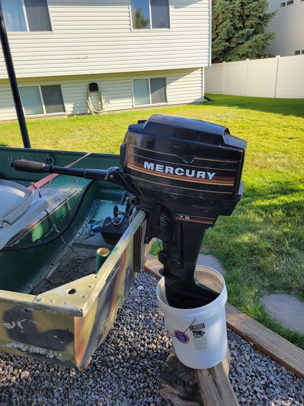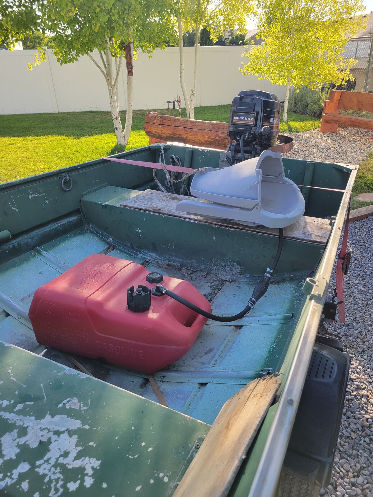 14' fishing boat with 7.5hp mercury 2 stroke motor. 2 life jackets and 2 heavy anchors.