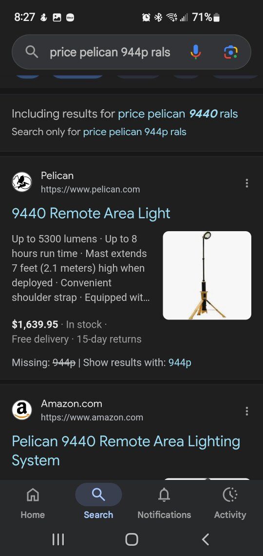 Venmopelecan 9440 rals work light has blue tooth controls 3 settings goes up to 7 feet high clean never use on a site asking $550.00 obo paid $1,600 for it