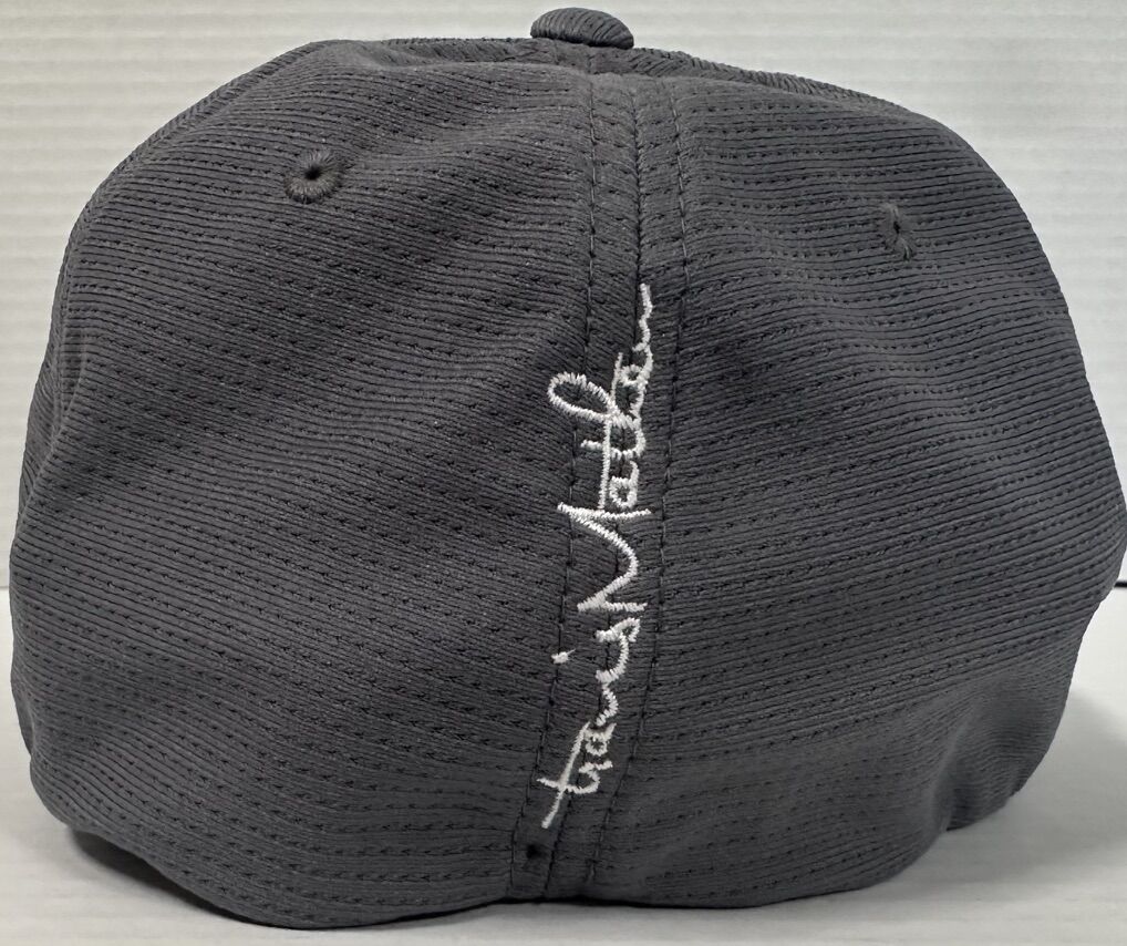 The Cotton Wood Golf Travis Mathews Quiet Shade Grays Fitted Hat in size L/XL is a stylish and practical choice for men who enjoy golfing or other outdoor activities. Made from breathable cotton canvas material, this hat features an embroidered Travis Mathew logo and comes in a sleek gray color. The fitted design ensures a comfortable and secure fit, while the gray shade adds a versatile touch to the hat's overall look. Whether you're hitting the golf course or running errands, this hat is a perfect addition to your activewear collection.