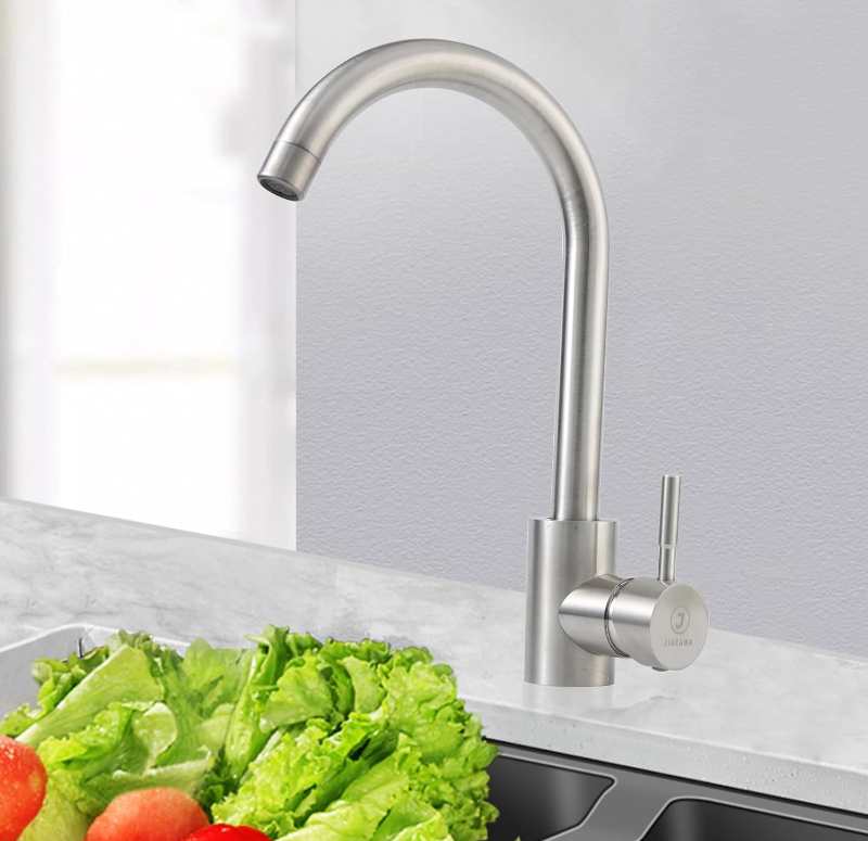 ZelleDurable Design Easy handling features:The spout and nozzle of the kitchen sink faucet can rotate 360degree smoothly. You can quickly move it to reach all areas of the sink.For any single bowls or double bowls, its rotating system is very suitable. The 360 ° degree rotation is another fantastic feature that makes this stainless kitchen faucet outstanding from rest others. This 360 ° degree rotation spout is work for full sink access.