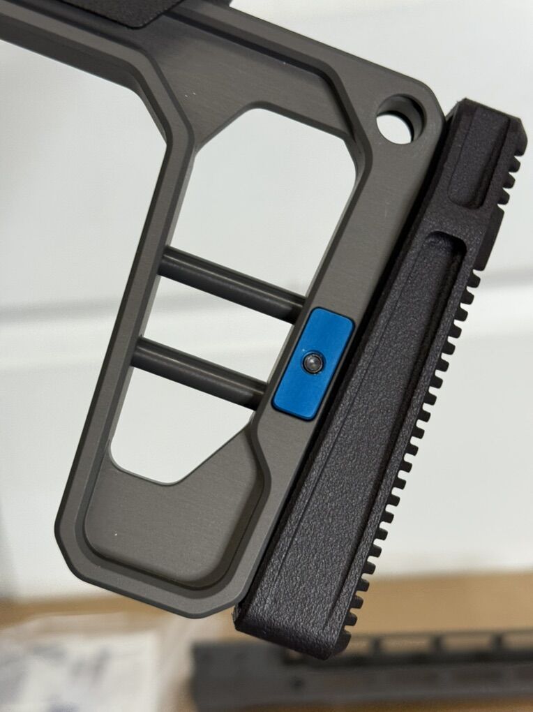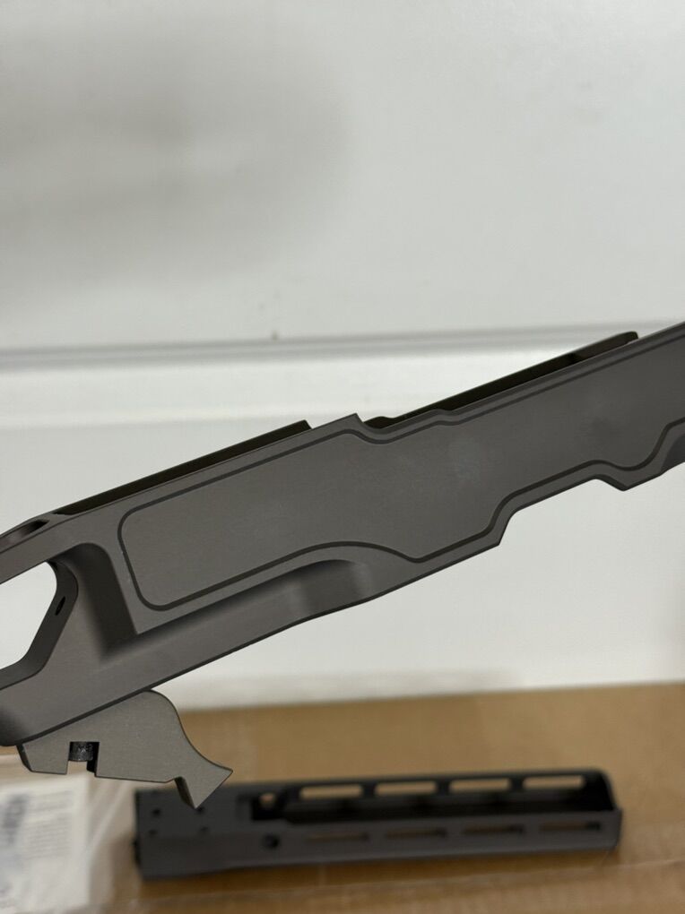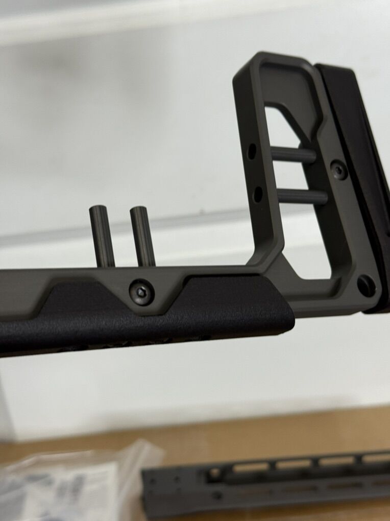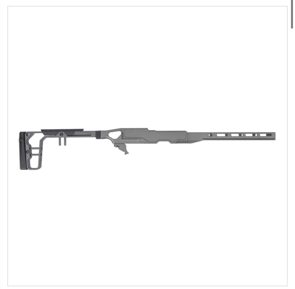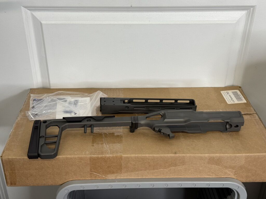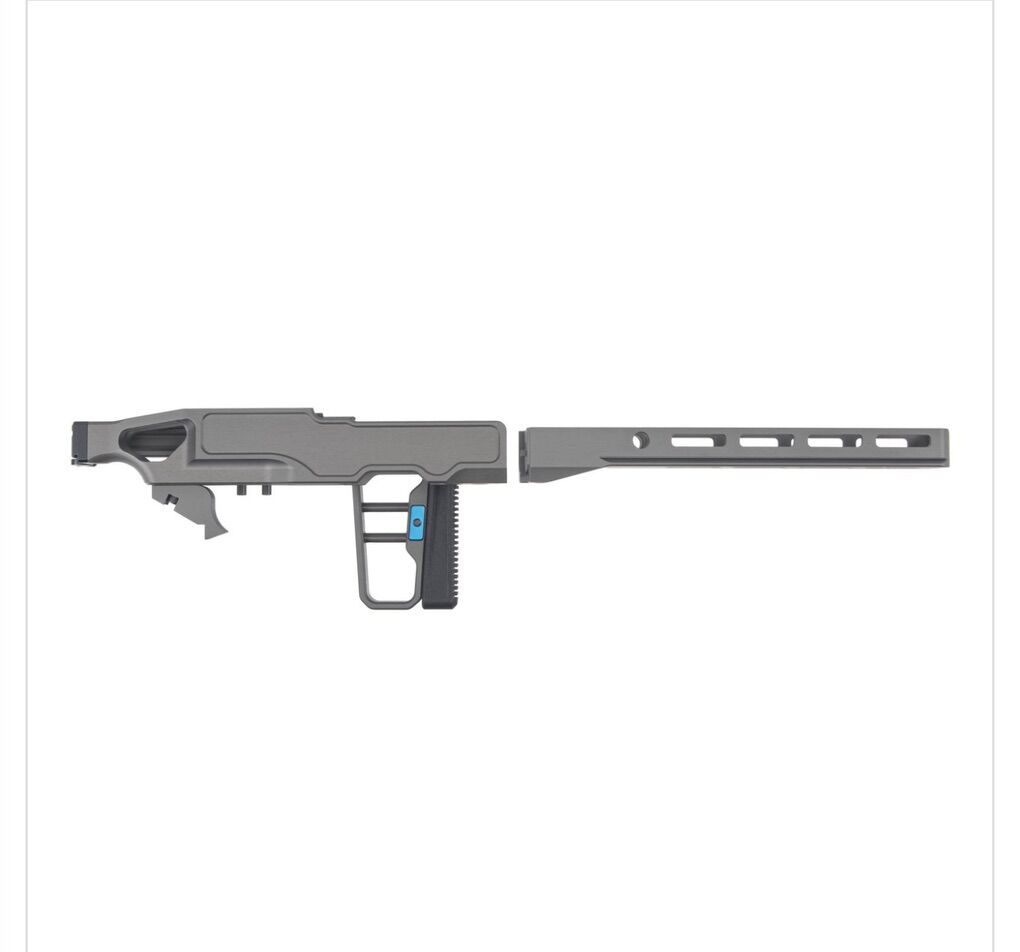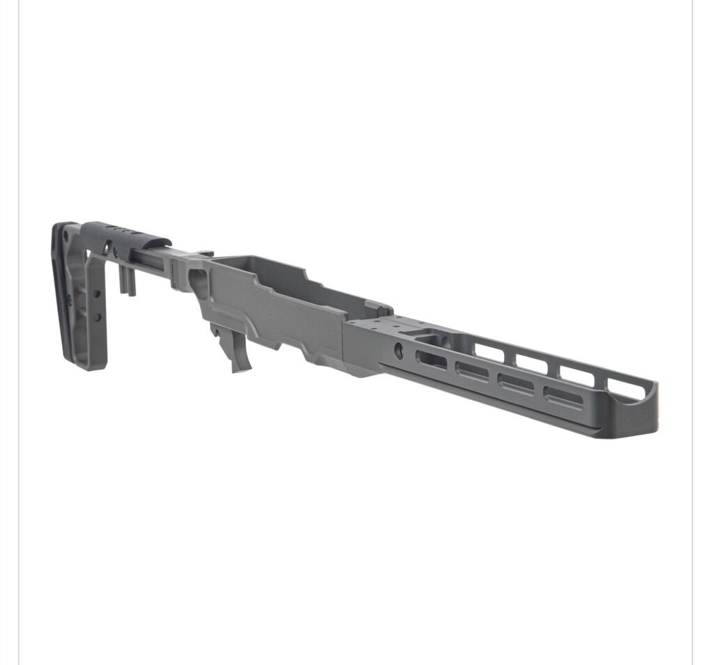 La Chassis TKD Features: Magwell Cutout for Easy Magazine Changes AR Grip Compatible Mounting Point (DOES NOT INCLUDE GRIP) Modular 10 Forend Forend M-Lok and Arca-Swiss Compatible Ambi QD Points on Forend & Stock Folding Stock (Stock can be Locked in the Fixed Position) Length of Pull and Cheek Weld Adjustment Rear Tension Point, Double Locking Weight: 688 grams Length Of Pull: 13 - 14.5 Overall Length: 29.5 - 30.5 Overall Length Folded: 20.5 Material: 6061 T6 AL Finish: Clear Hard Anodize Rail Length: 10 Tools Required: 5/64 Allen Key 3/32 Allen Key 1/8 Allen Key 5/32 Allen Key *The Stock can be permanently locked into a fixed (non folding) position. **Compatible with most 10/22® pattern receivers and trigger groups without modification. 10/22 takedown receiver/barrel NOT included ***DOES NOT INCLUDE GRIP
