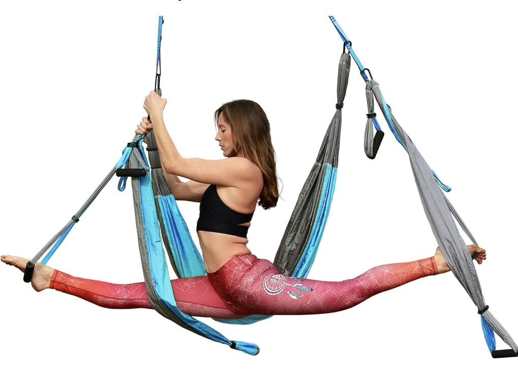 VenmoYogaTail brand, Strength Antigravity Yoga Hammock - Inversion Trapeze Sling Exercise Equipment with Two Extender Hanging Straps Specs & Features Material: Nylon Size: 100 x 57 inches Weight Limit: 600 lbs Accessories: 4 matching carabiners, 2 climber extension straps, 6 padded handles, 2 side silks, 1 eBook Like New! Paid $100 for it, asking $50. Lowered to $40 PU in Woods Cross