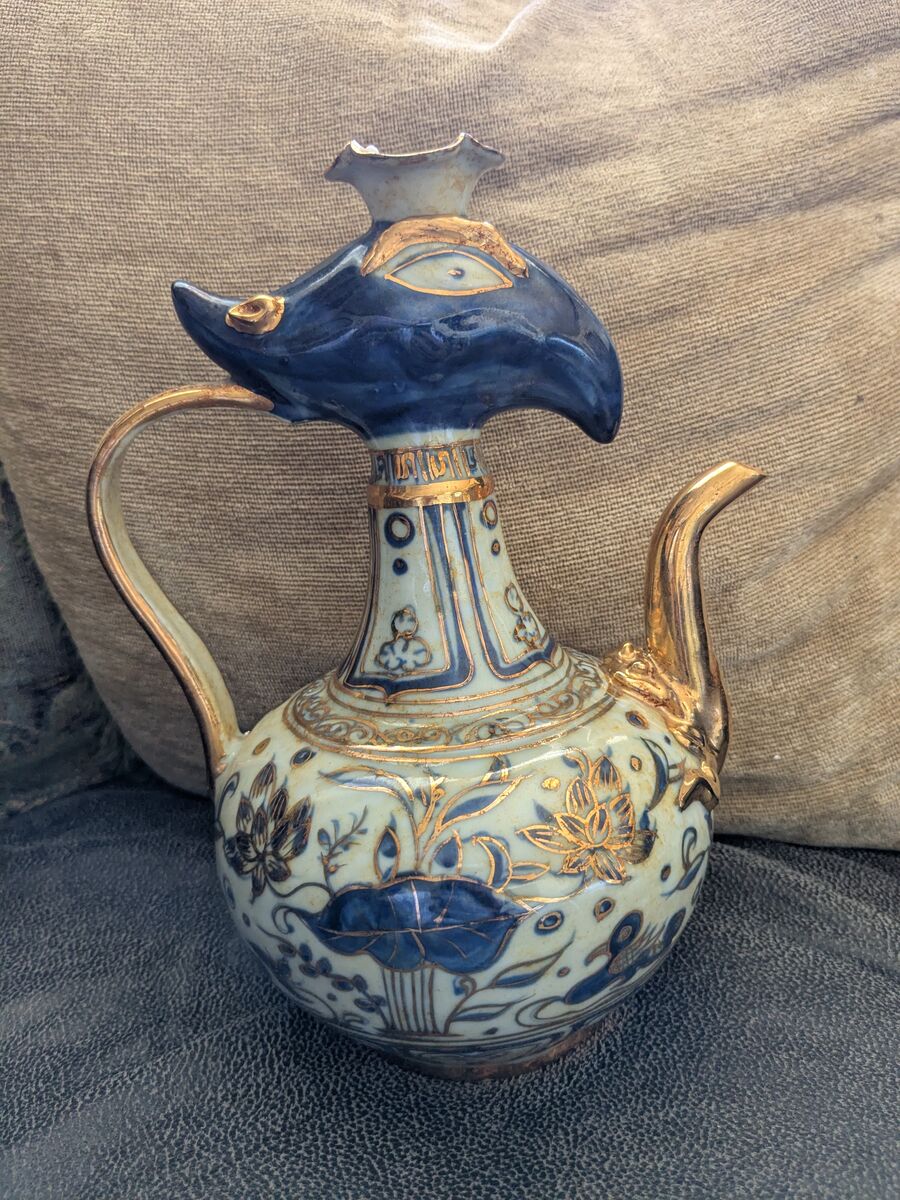 Antique Ming Dynasty teapot 24K gold gilt. Excellent condition. No chips