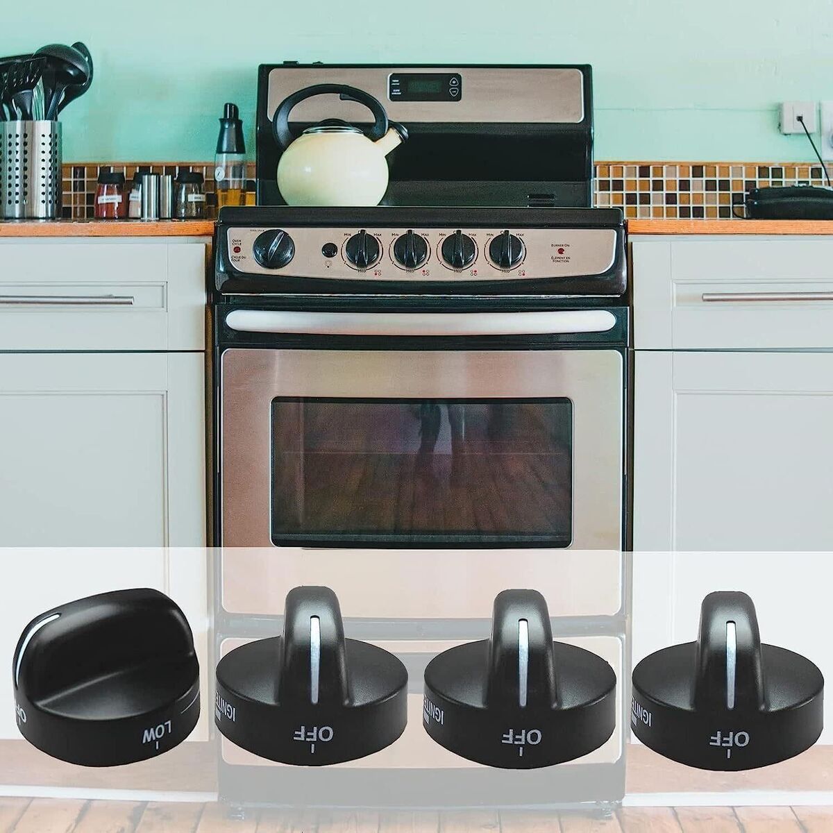 Retailer Website: Maxmoral 8273103 Gas Stove Knob 4PCS Black 8273103 Range Control Knob Replacement Part, Range Burner Knob for Whirlpool Gas Stove - Replace WP8273103 AP6012363