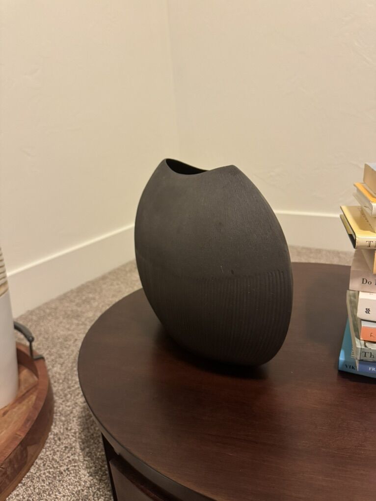 VenmoCeramic ribbed vase in an interesting shape, matte black color and made in Thailand. Purchased at homegoods for $30 originally.