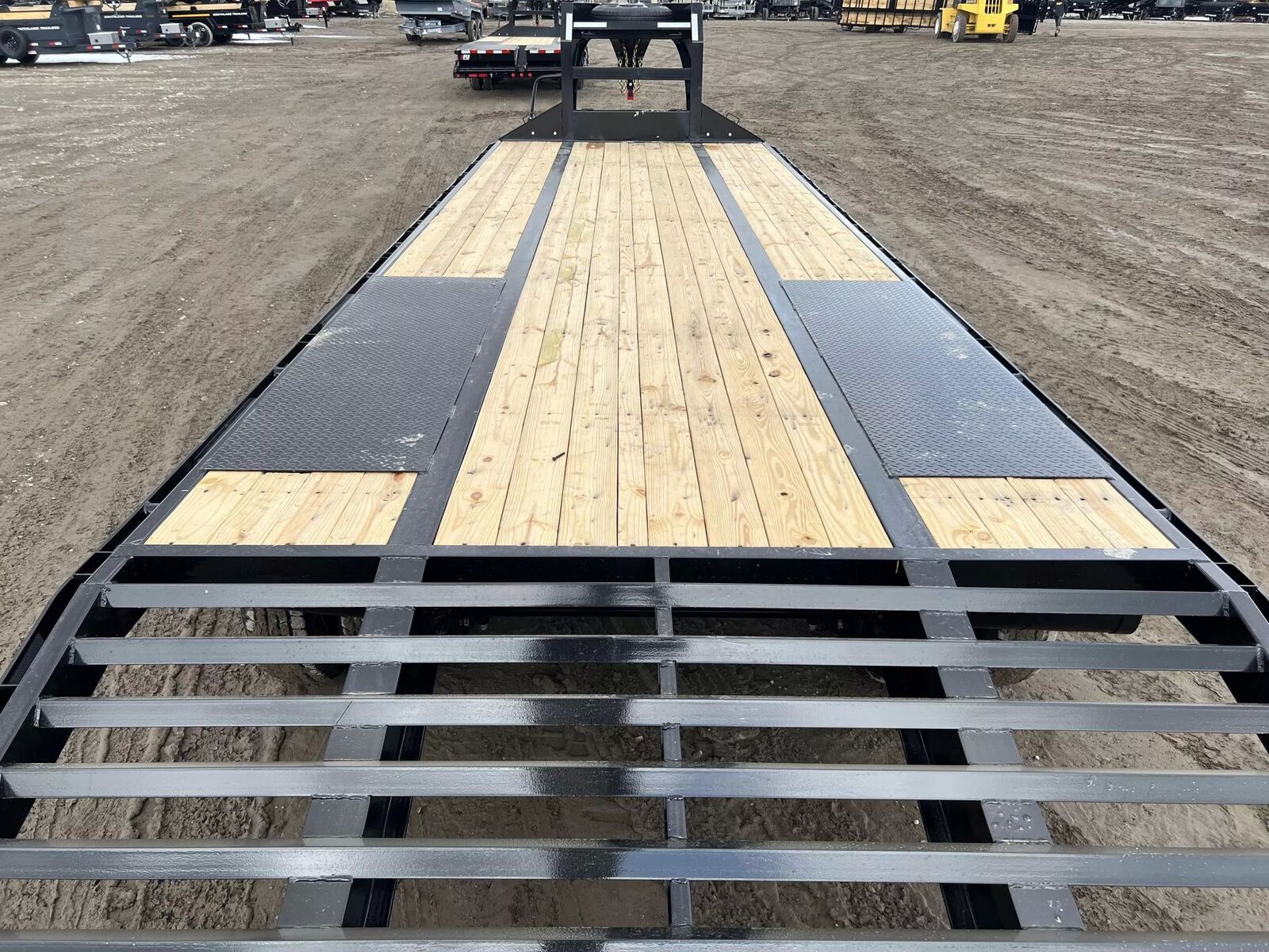 Stock Number: PJ6085 Trailer Includes Following Options: 5' Dovetail w/ Flip Over Monster Ramps Dual Hydraulic Jacks Standard Features: 25,000 lbs. GVWR 10,000 lb. x (2) G.A.W.R. 3/8" Grade 70 Safety Chain w/Clevis hook (2 each) Spring Loaded Drop Leg Jacks (10,000 lb.) 2 - 10,000# Axles (Dexter) Electric Axle 5-Leaf Slipper Spring Suspension Dual 16" Black Wheels (8 on 6.5" Bolt Pattern) ST235/80R16 Radial Tires (3,080 lbs.) 3-5/8" x 1-1/2" (ID) Stake Pockets Diamond Plate Low-Pro Fenders 12" x 19 lb. I-beam Tongue 3" Channel Crossmembers on 16" Centers 2" Treated Pine Lumber Deck 102" Wide Deck DOT Approved Flushmount Lifetime LED Lights All-Weather Wiring Harness (7-way RV) Powdercoat 5 year Dexter Axle Warranty WASATCH TRAILER SALES - LARGEST TRAILER SELECTION IN UTAH Springville: (801) 528-1581 | 1180 S 2000 W, Springville UT, 84663