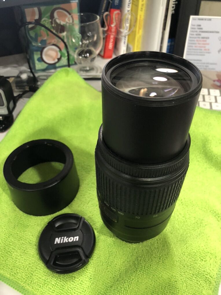 Nikon 55-300mm f/4.5-5.6G AF-S Nikki’s ED VR Zoom Lens. This lens is in new condition. I don’t use any of my Nikon camera stuff anymore. I am posting a pic of the other stuff as well, if there is any interest.