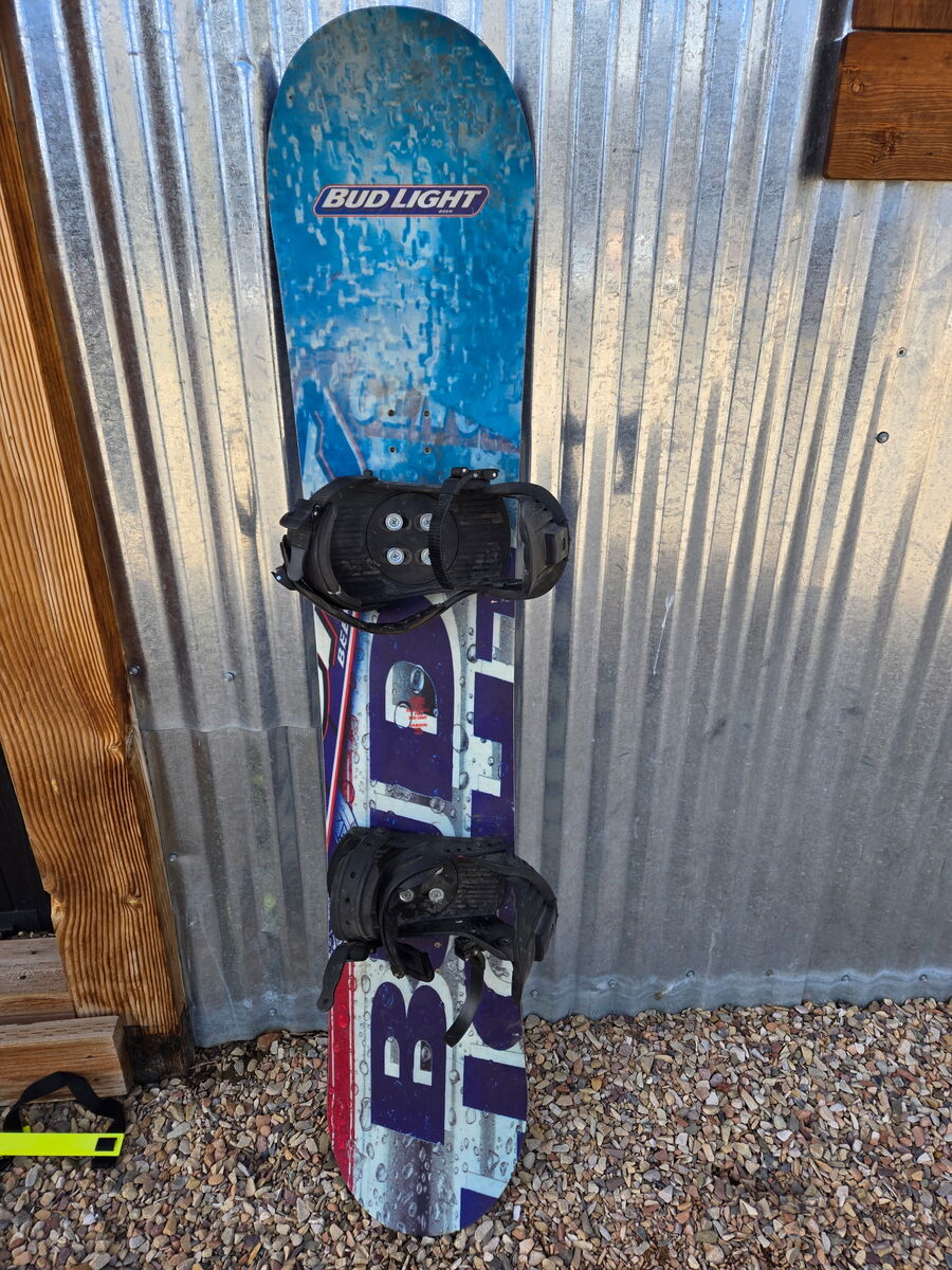 My husband used to work for Budweiser and got this back in the early 2000s. Pickup is in kamas 84036. We are firm on price. If you aren't sure where kamas is, please Google before committing to pickup. Text is best, 801-787-8634. I don't know much about snowboards but I can tell you it's 57 in tall and 10 in wide.