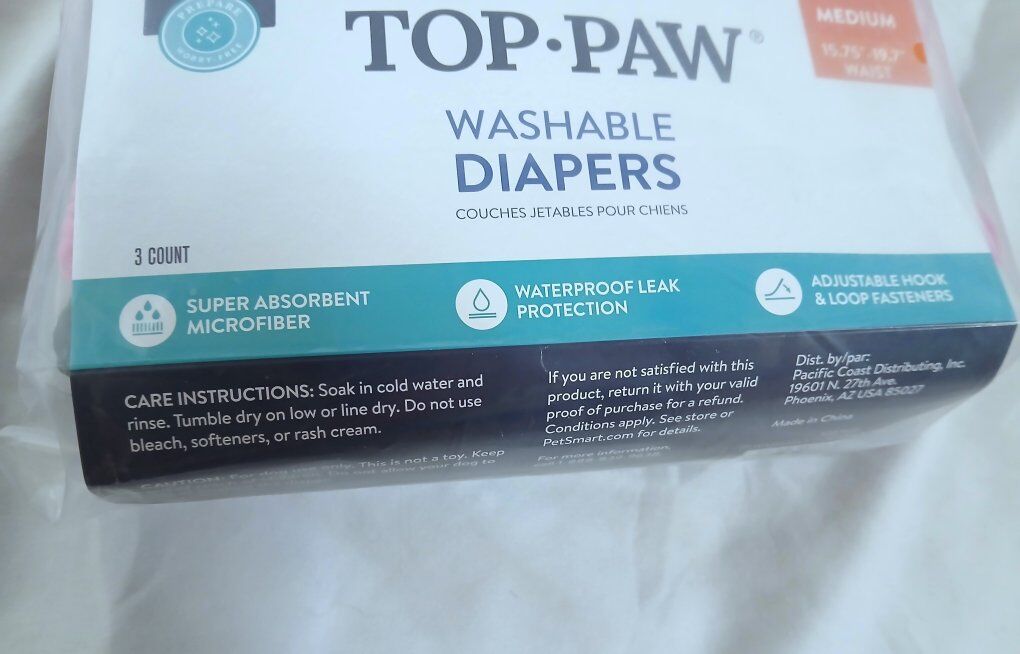 VenmoNew doggy diapers, reusable and machine washable on delicate. I have 2 packs, with 3 diapers in each. Size Medium. See pictures for product details. I've used this brand for another dog and they've worked well. Use a detergent without nut oils (they clog the fibers so they're not absorbent), then an enzymatic cleaner in a rinse (like apple cider vinegar). They may stain but they will not smell. My dog is spayed so I do not need these. $15 each pack, $25 for both packs together. Cash or venmo. Check out my other listings!