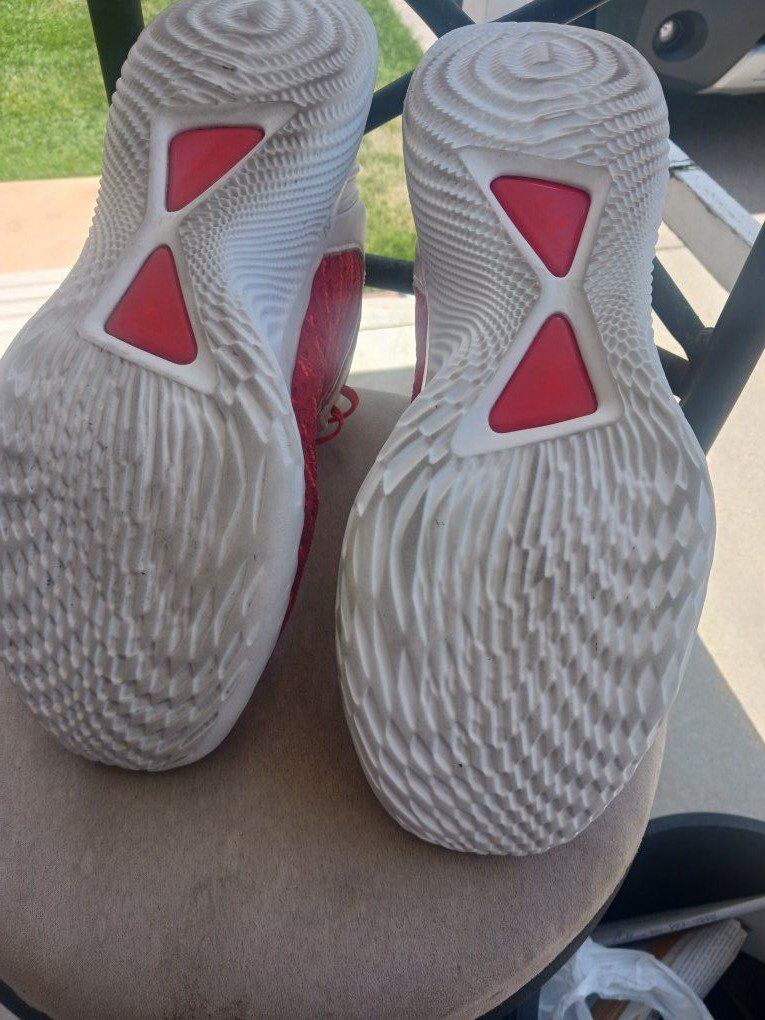 this is an almost new pair of Under Armor Curry team 9 flow shoes. they are a size 16 man's or a woman 17. 5. shoes of this type this size sell for almost $200 new online. but you can buy these for less than half that much.