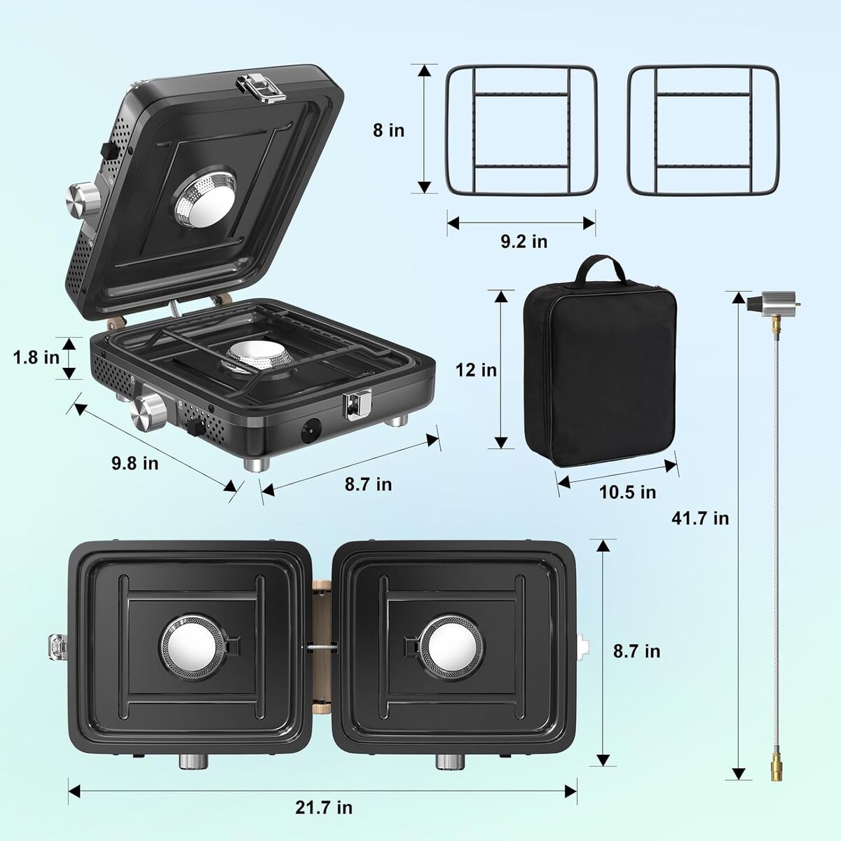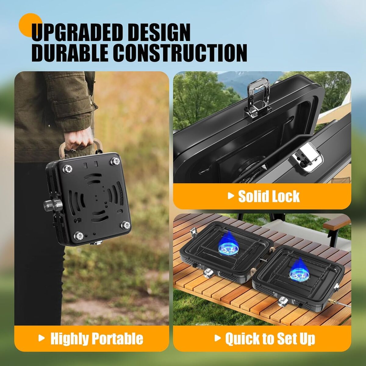 NEW IN BOX! Portable Folding Camping Stove - 2-Burner Propane Camp Stove with Push-Button Instant Ignition,Adjustable Stove with Carry Bag & Handle for Outdoor Tailgating, Backyard BBQ Camping Essentials,Gifts