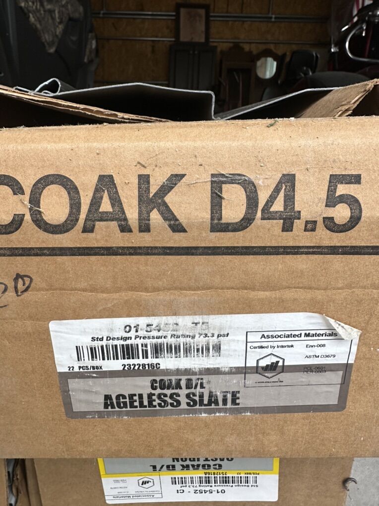 Just over 100 square feet. Charter Oak Dutch lap siding from Alside (Best siding on the market. The color is Ageless Slate. Which is a darker gray siding and a premium grade color. This is the good stuff, not like a lot of cheaper sidings. Would cost about 200 from the supplier.