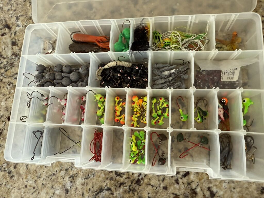 Box full of fishing jigs can meet in Sandy Draper south Jordan