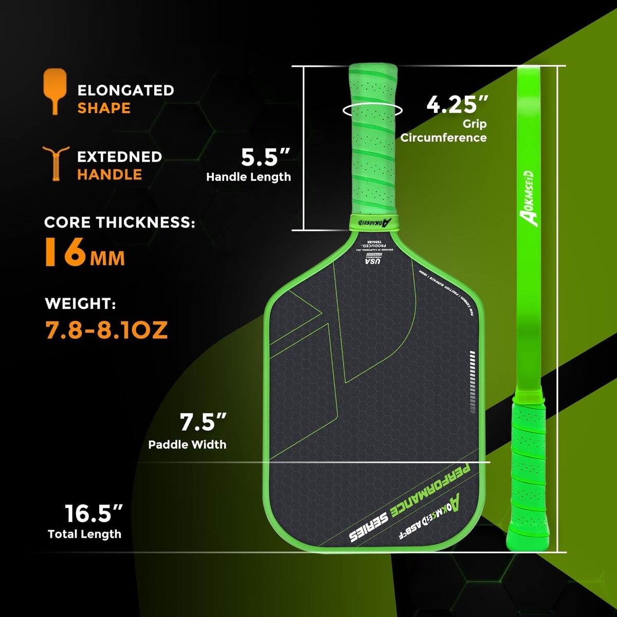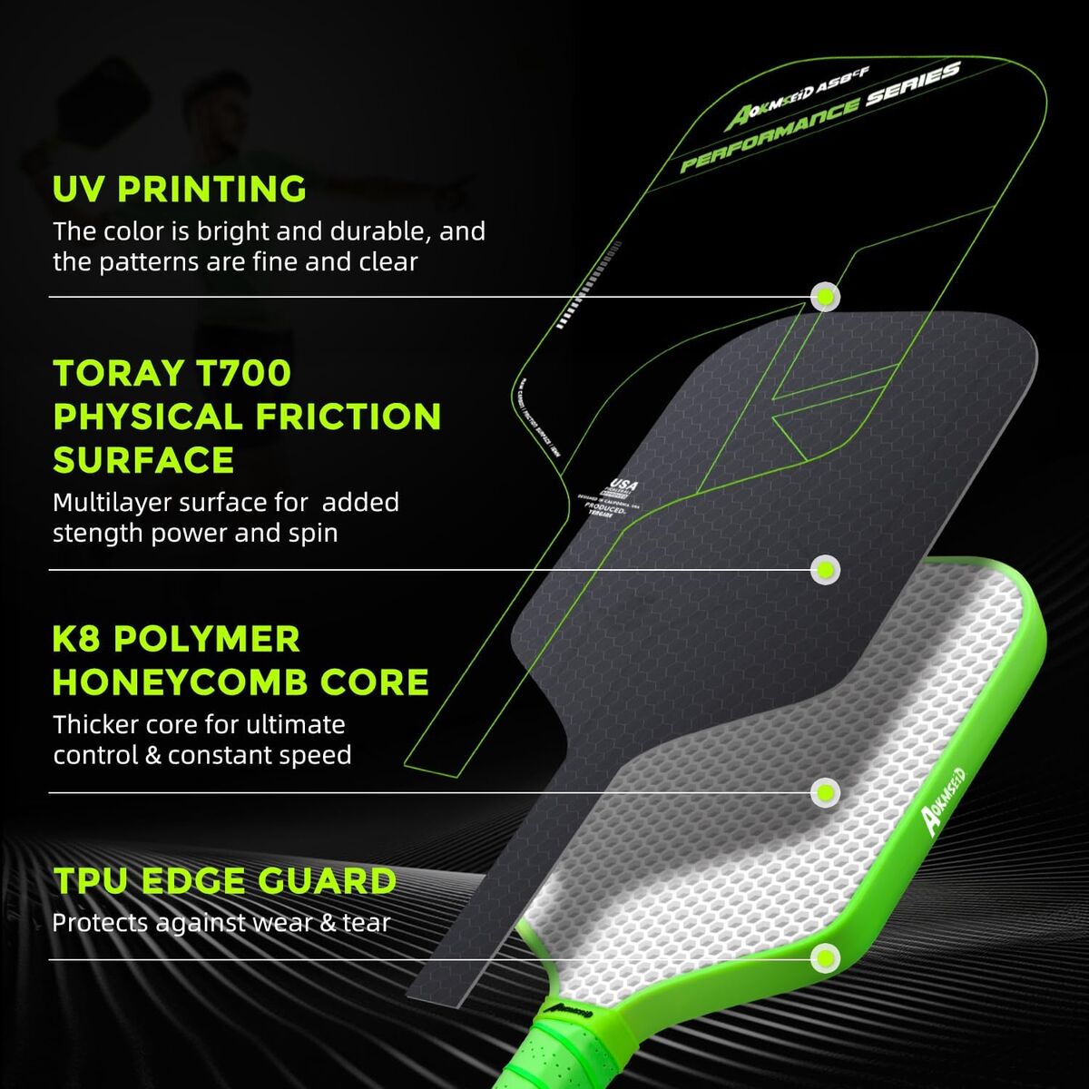 NEW IN BOX! Performance Series Pickleball Paddle - Toray T700 Carbon Fiber Surface, 16mm Polymer Core, High Control & Spin, USAPA Approved - Green