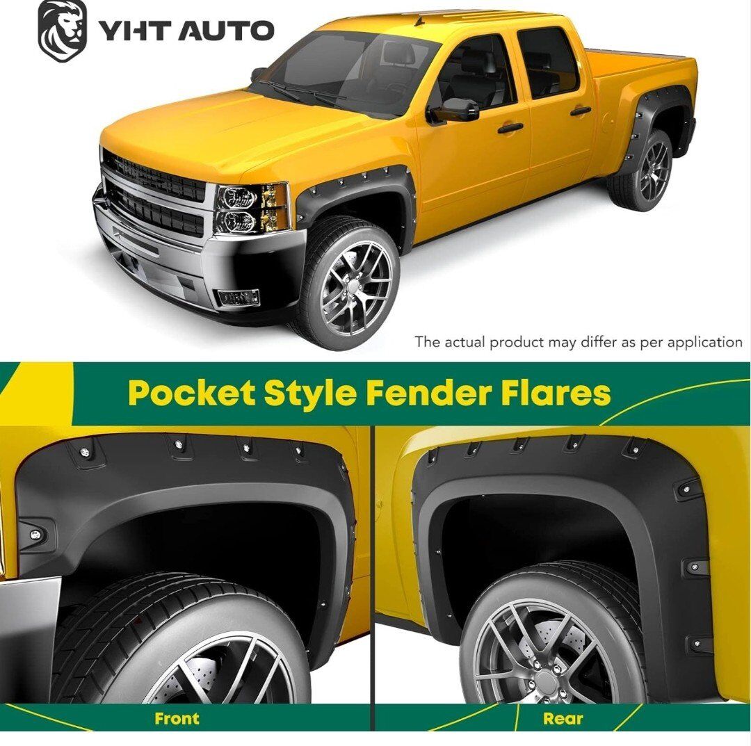 Venmoonline $325 YHTAUTO Pocket Bolt-Riveted Style Fender Flares w/Hardware Kit Replacement for Ford F-250/350 Super Duty 2017-2022, Shiny Black Wheel Flare Cover Protector, Set of 4, Front & Rear