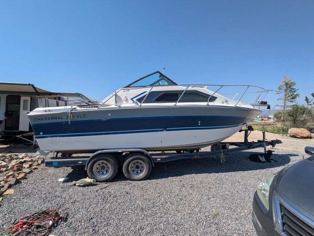 VenmoUp for sale is a 86 Chaparral 238 XLC Volvo Penta 260 Cabin Cruiser Boat 600 hours. Was winterized 2 years ago, and has sat, Motor had a fresh tuneup back then. Has Cabin. Bathroom, Sink, dining area, bunk bed area. Located near Park City Utah in Browns Canyon. Message for more info. Title in hand. 3500 or best offer. Boat fires right up