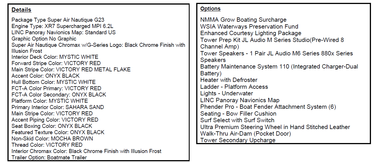 The g23 is an award winning boat for a reason. Awesome and beautiful design and wake performance whether you are surfing or wakeboarding. Besides a price that cannot be beat. THIS BOAT IS LOADED!