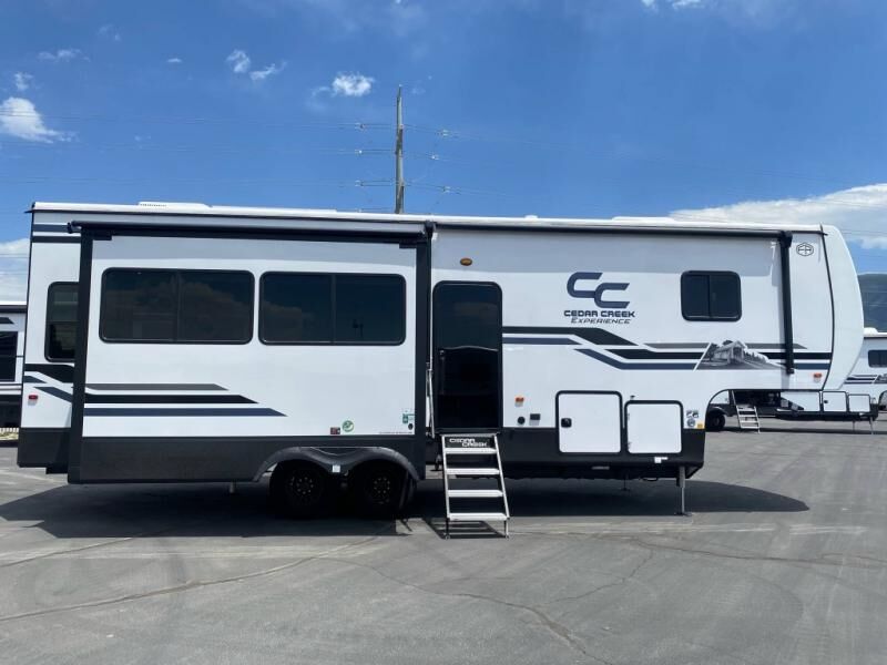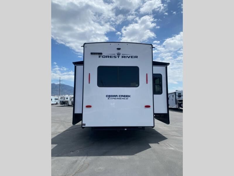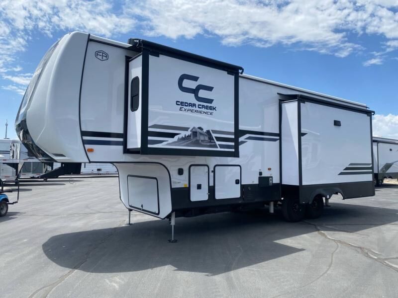 With any Cedar Creek Experience fifth wheel by Forest River, you will bet met with luxury features both inside and out! The True Gelcoat exterior is the best of the best in exteriors and the 3M bonded sidewalls will hold up over years of use. There is also a new 101'' wide-body frame, a Road Warrior suspension, plus a TST tire pressure monitoring system to make towing that much easier. You will find a hidden front storage compartment, along with a 4' x 6' ABS, ribbed, removable underbelly panels, and 6-point hydraulic leveling system, plus many more exterior conveniences. The interior will have you feeling like you haven't left home with vinyl floor coverings, power theater seating with USB ports, a cozy fireplace, v****inyl floor covering and the list of comforts goes on! Each model is also pre-wired for satellite to the roof, and you're sure to never go bored with a Smart TV in the bedroom!