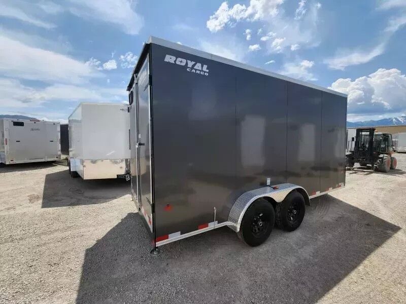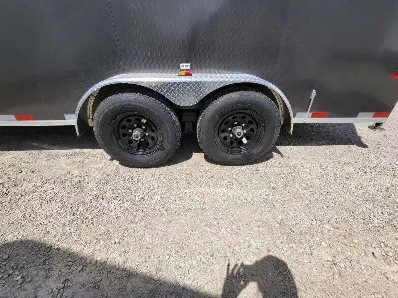 Stock #: SL3965 Trailer Specs: Color: Charcoal .030 Bonded Aluminum Overall: Length: 19'10" Width: 8'6" Height: 9'0" Interior/Bed: Length: 16' Box + V-Nose Width: 6'8" Height: 7'0" Door/Ramp: Rear Barn Door (Width: 72" x Height: 80") Weight: 2,464 lbs. | GVWR: 7,815 lbs. | Payload: 5,351 lbs. Axle(s): 5,200 lb. Lippert Spring Electric Axle w/ EZ Lube Hubs Tire/Wheel: ST225/75R15 | Load Range C Coupler: Type: Bumper Pull | Size 2 5/16" | 7-Way 12V Connector 16" OC Vertical Posts | 16" OC Crossmembers | 24" OC Tube Roof Bows Standard Features: HSS Structural Tubing Steel Frame Side Man Door (28" wide x 77" tall) 3/8 Plywood Interior Walls 3/4" Plywood Floor Enclosed Wiring Interior Lights w/ Wall Switch Automotive Style Undercoating 24" Diamond Plate Rock Guard Electric Breakaway Kit Side Cross Flow Vents Aluminum Diamond Plate Fenders Common Addons: Wall Mounted Spare Tire 10 ft. E-Track Stick Recessed 2,500# D-Ring Additional Colors Available Call for Availability WASATCH TRAILER SALES - LARGEST TRAILER SELECTION IN UTAH Springville: (801) 528-1581 | 1180 S 2000 W, Springville UT, 84663 View More Inventory: www.wasatchtrailer.com