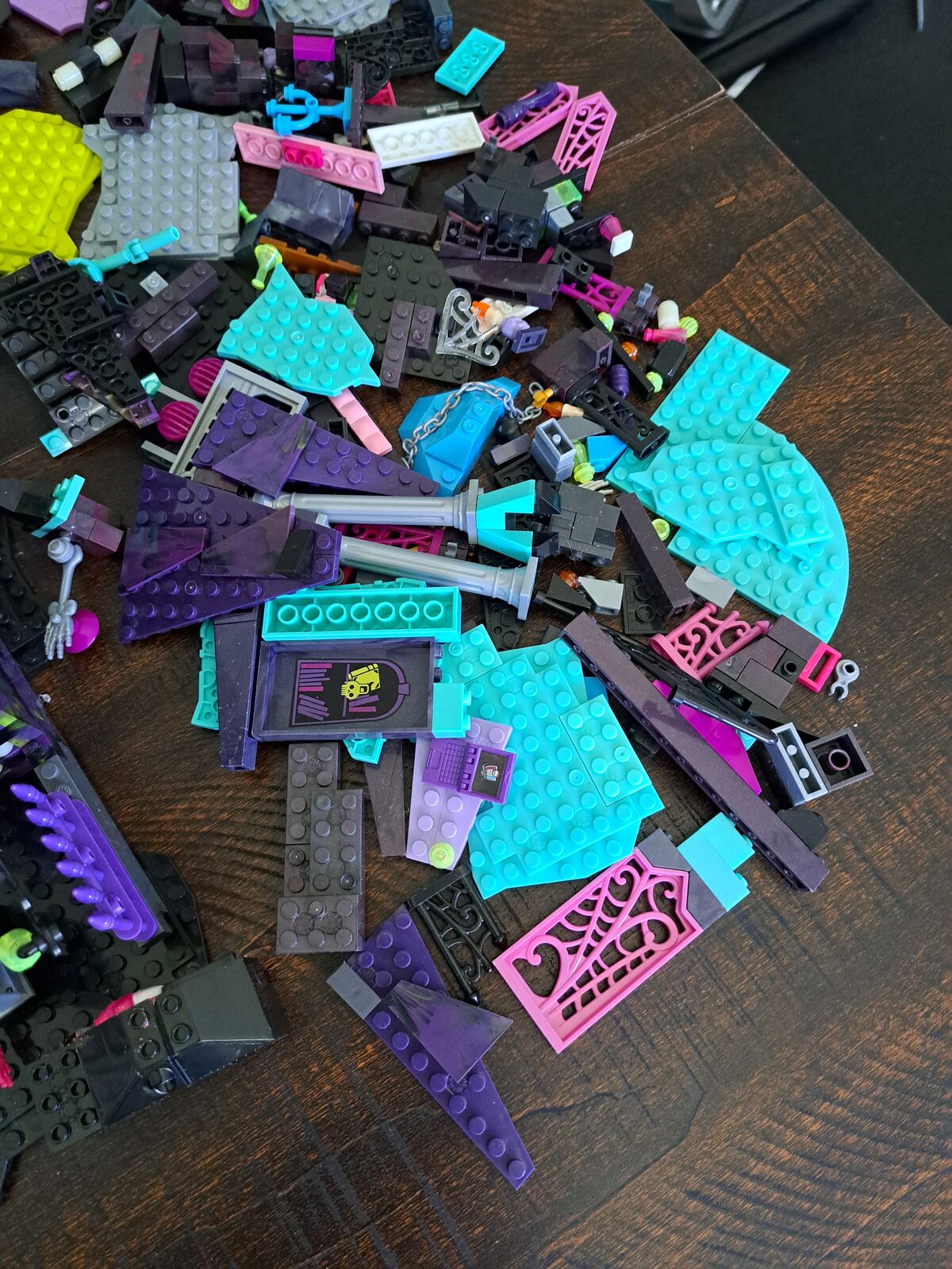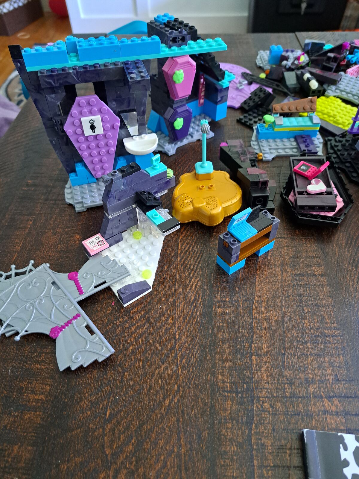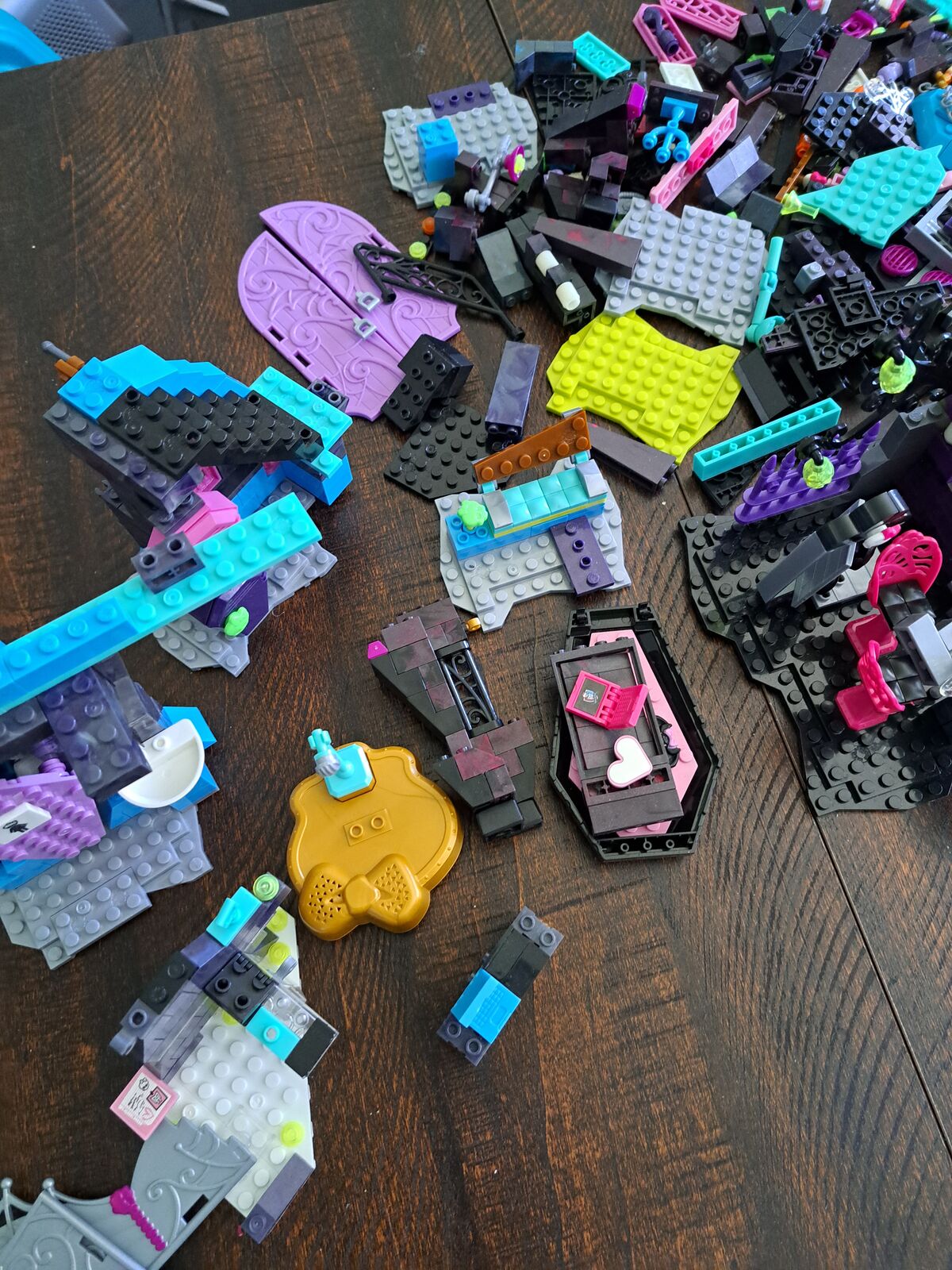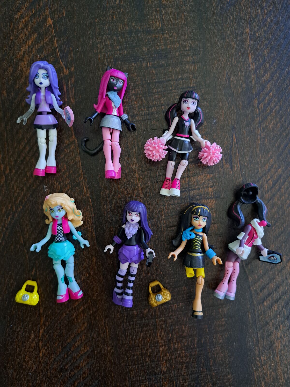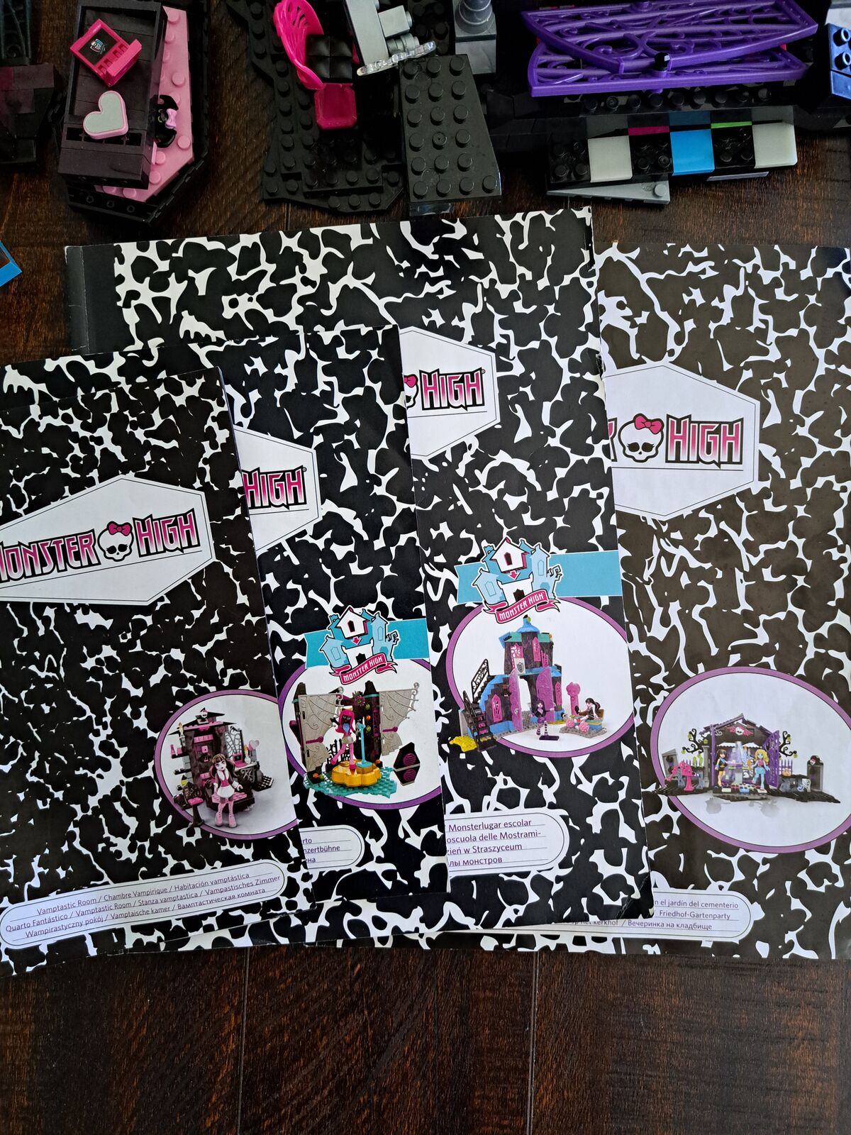 ZelleMonster High Mega Blocks - as-is! Includes: 7 minifigs (5 complete and 2 incomplete) 4 instruction books 4 mostly complete sets (Graveyard Garden Party, School Fangout, Stage Fright, and Vamptastic Room) I have not checked to see if every block is included. Sold in bulk AS-IS.