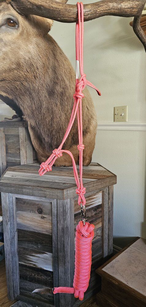 I can tie any size (Average is the size of these halters, fits most horses heads). All halters can have a matching lead rope, however some colors are out of stock.