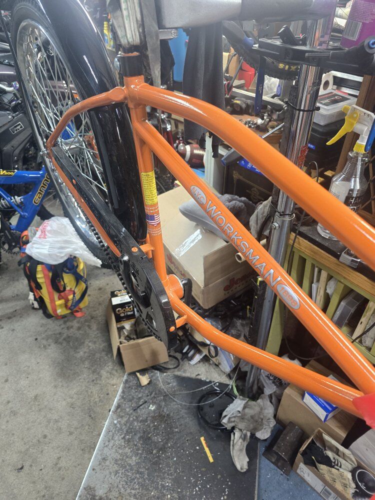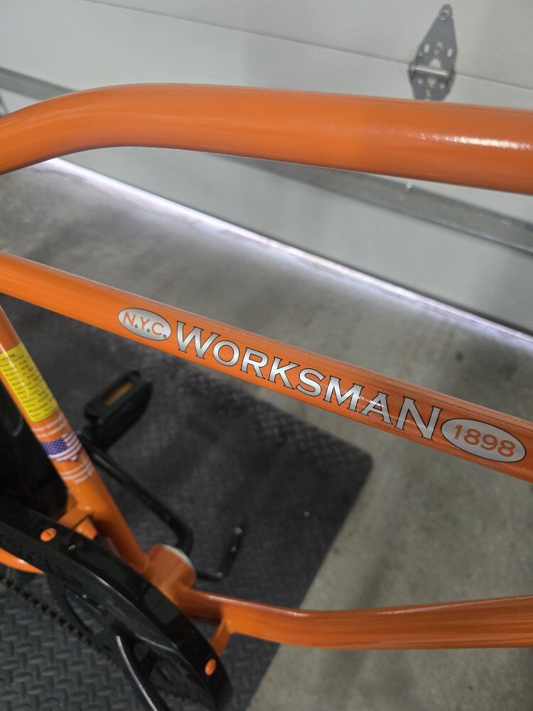 Brand New Zero miles Worksman Newsboy Cruiser single speed heavy duty bike professionally built and ready to roll. This bike retails for $490 plus tax and shipping and then pay someone to build it. This bike is brand new with 0 miles on it. Heavy duty and built for the job. Perfect condition. Made in the USA.
