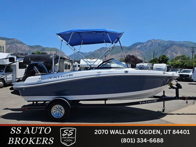 **Check www.ssautobrokers.com (http://www.ssautobrokers.com) for more photos and info! Temperatures are down and so are our prices! Take advantage of these discounted prices and find something you love! End-of-season = prices dropping here at SS Auto Brokers! Be a smart buyer and shop with the little guys to save you time and money! Our prices will NOT be beat! 2024 Quality Dealer of the Year! 27 years in business! We are very honored to be voted Utah's Quality Dealer of the Year! This is a reflection of ethical business and top quality service to our customers! We look forward to showing everyone why we were voted Quality Dealer of the Year! Buying from a broker with NO freight/fuel/set up fees and low overhead = LOWER prices! Having the best pricing in the industry, our pricing is the SAME for RETAIL CONSUMERS & DEALERS! This 19'10'' Tahoe comes equipped with a 115 Mercury Outboard engine, Sea-Star steering cylinder, 8 person capacity, rear swim ladder with rear swim platforms around the outboard, tow tower, rear bench seats, captain and co captain seats, large hull storage, live well with pump, Bimini top, open bow body, Jensen media unit, HawkEye depth finder, single axle trailer with folding tongue, and more! Whether you want to play or fish, this boat is for you! Come in and check it out today! We are located at 2070 Wall Ave, Ogden UT 84401. For more information please contact: Cameron 801-645-7880, Kobe 801-452-1228, Kooper 801-710-0378, or our Sales Dept at 801-334-6688. We have the best financing and customer service available. Visit our website at www.ssautobrokers.com (http://www.ssautobrokers.com) to see all of our inventory including cars/trucks/bikes/powersports/RV's/boats & more! WE TAKE ALMOST ANYTHING IN ON TRADE! DLR #1747 Length 19' 10'' Beam 7' 10'' Bottom Width 6' 8'' Fuel Capacity 35 gal. Max. Person Capacity 8 persons Max. Person Weight 1335 lbs. Max. Person, Motor &;amp; Gear Weight 2100 lbs. Interior Depth 32.5'' Deadrise 16 degrees Draft (Trimmed Up) 15'' Draft (Trimmed Down) 30.5'' Average Hull Weight 1940 lbs. Average Hull Weight w/Motor 2395 lbs. Average Package Weight 3295 lbs. Bridge Clearance 4' 5'' Bridge Clearance w/Wakeboard Tower Upright 7' Package Height 6' 8'' Package Height w/Wakeboard Tower Upright 9' 7'' Package Width 8' 4'' Towing Length 24' 9'' Storage Length 21' 6''