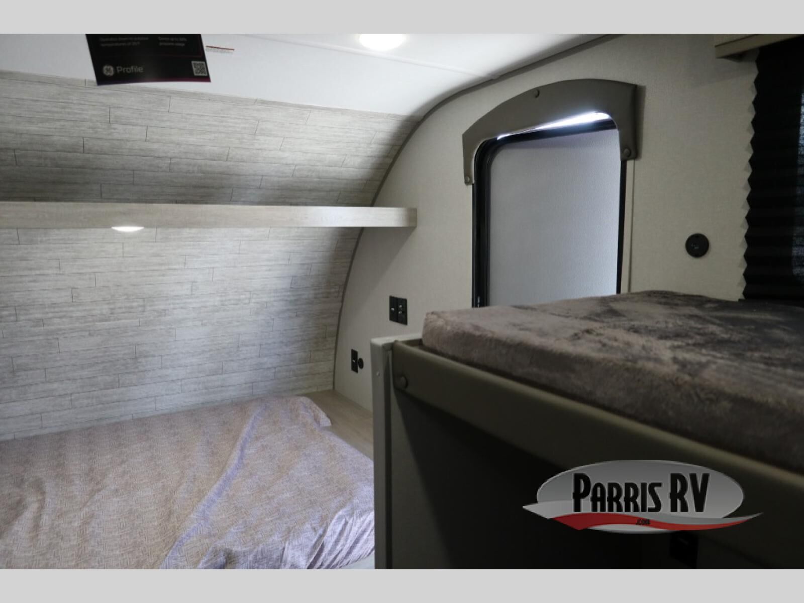 Lightweight camping is easier than you think with this travel trailer in tow! The front 54" x 74" queen bed will provide a great night's rest each night, while the little ones or your guests take the bunk beds. There is a handy shelf above the front bed for your belongings plus additional bedroom storage. A private bath includes a 24" x 32" shower and a toilet with a mirror behind it so you can freshen up each day. You'll also find a two burner cooktop and microwave oven to make meals each day plus a 3.3 cu. ft. 12V refrigerator for food storage!