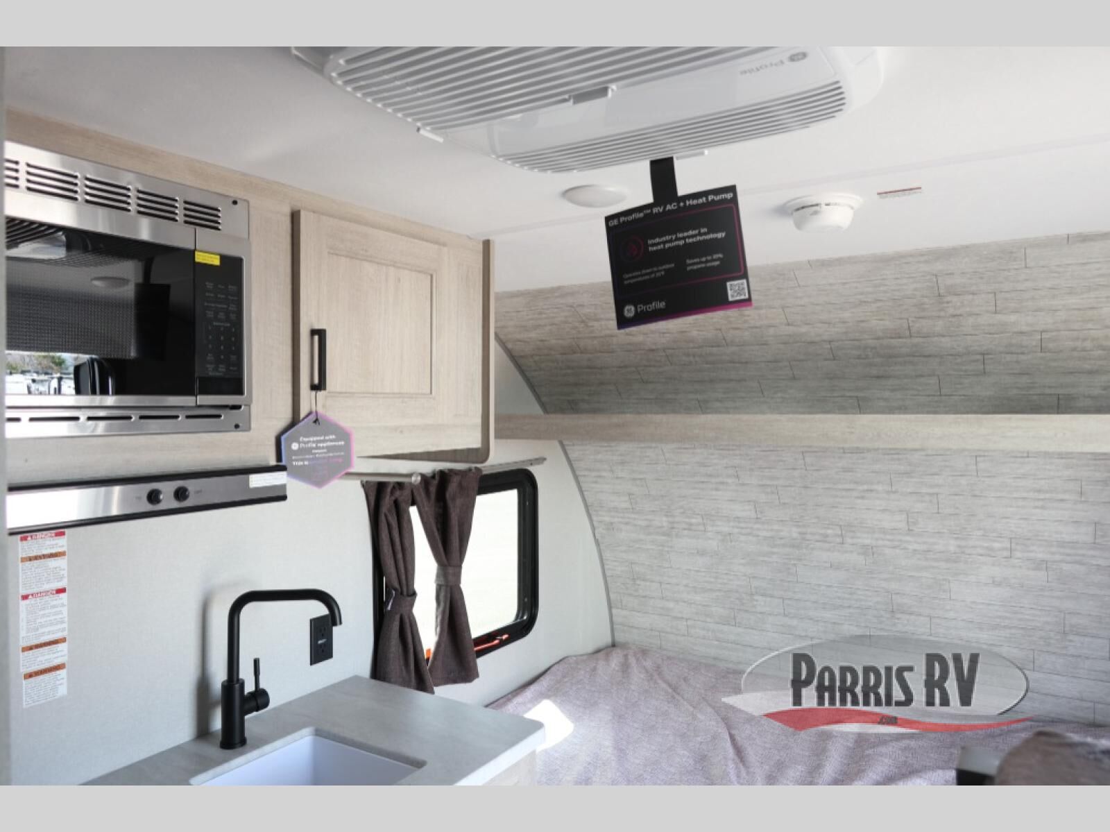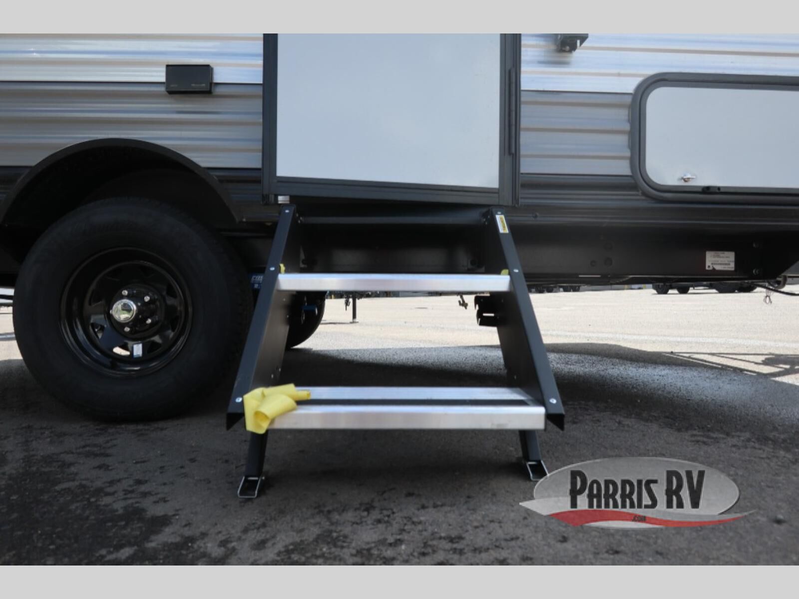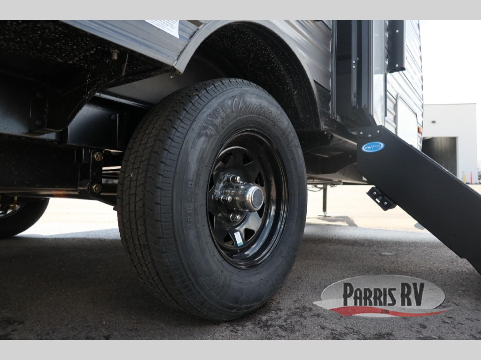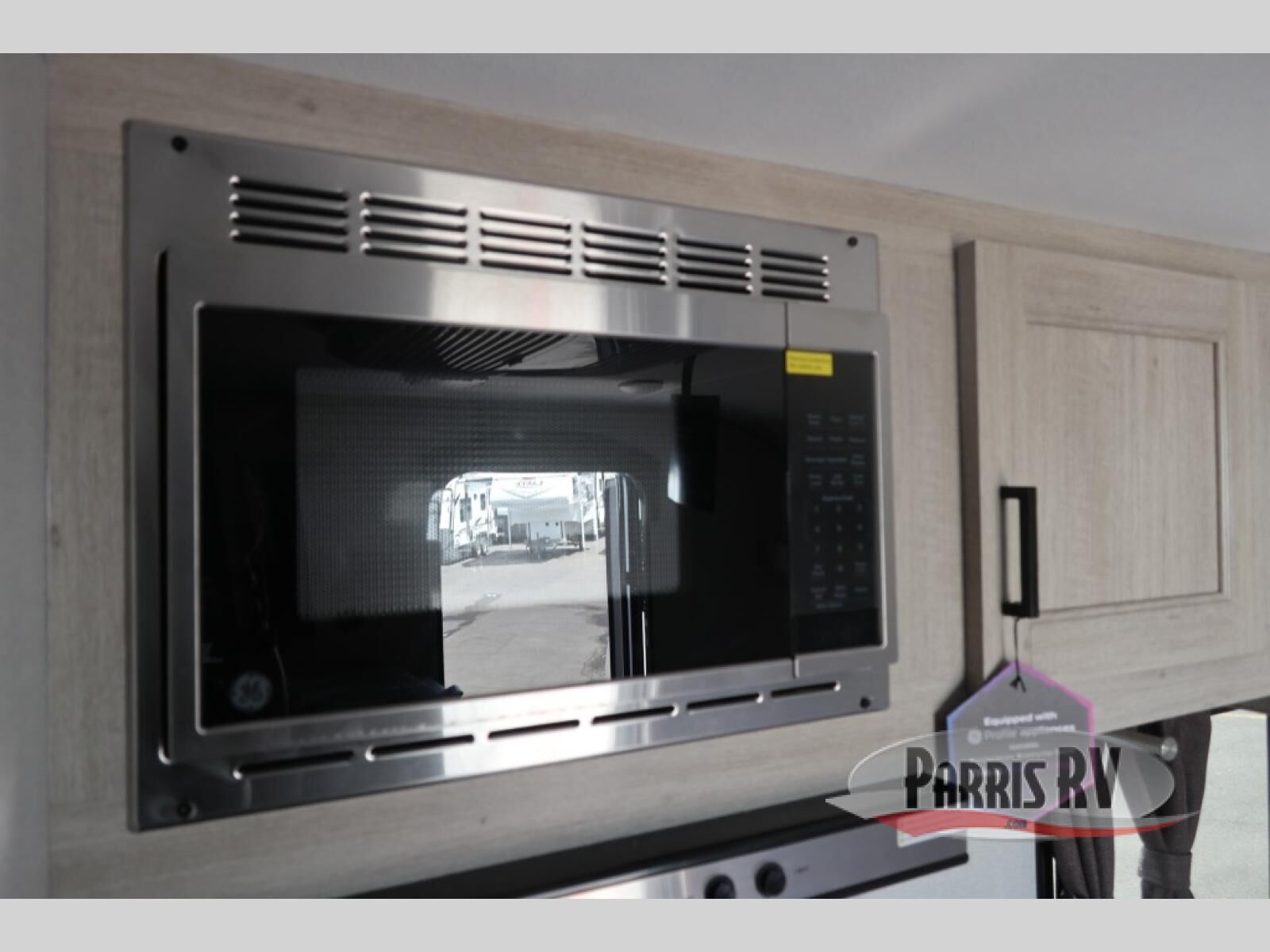 Lightweight camping is easier than you think with this travel trailer in tow! The front 54" x 74" queen bed will provide a great night's rest each night, while the little ones or your guests take the bunk beds. There is a handy shelf above the front bed for your belongings plus additional bedroom storage. A private bath includes a 24" x 32" shower and a toilet with a mirror behind it so you can freshen up each day. You'll also find a two burner cooktop and microwave oven to make meals each day plus a 3.3 cu. ft. 12V refrigerator for food storage!