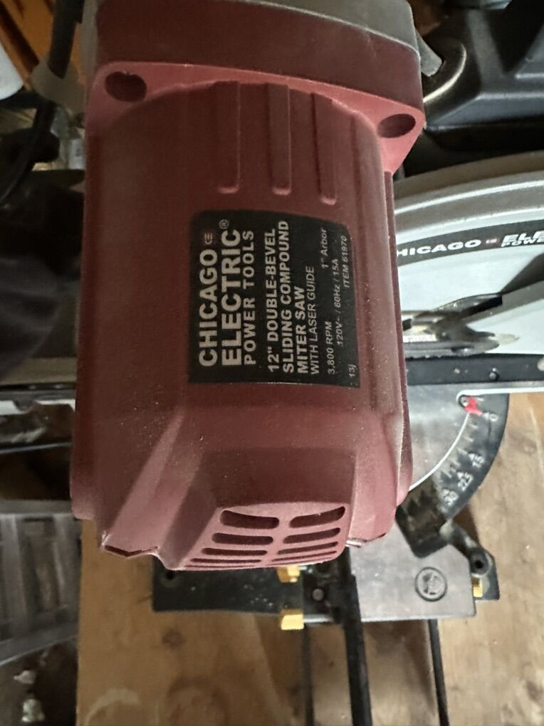 VenmoChicago electric 12” double bevel sliding compound miter saw for sale, with stand, works great has laser alignment, need the space. Asking $175 for saw and stand.