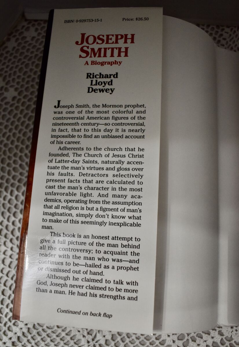 Joseph Smith A Biography By Richard Lloyd Dewey- 2005 Hardback With a nice looking Dust Jacket With 531 Pages of wonderful reading.
