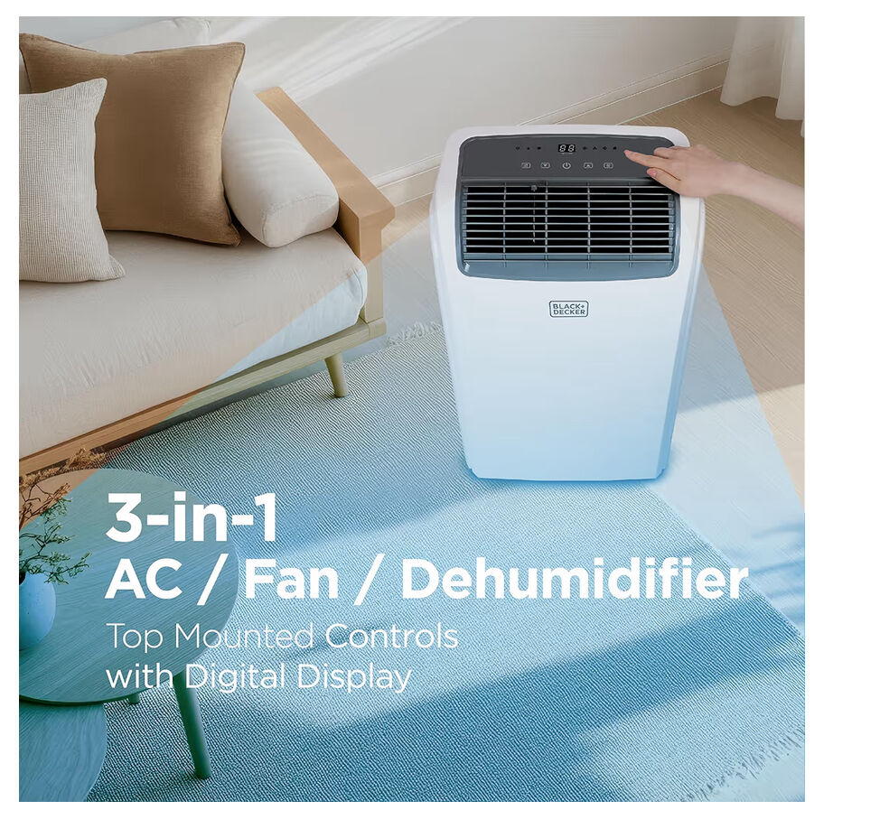 Portable AC: Take this personal air conditioner (16.5” x 11.7” x 27.9) in rooms up to 550 sq. ft. Stay cool in the hot summer months and sleep well with this BLACK+DECKER ac unit for bedroom