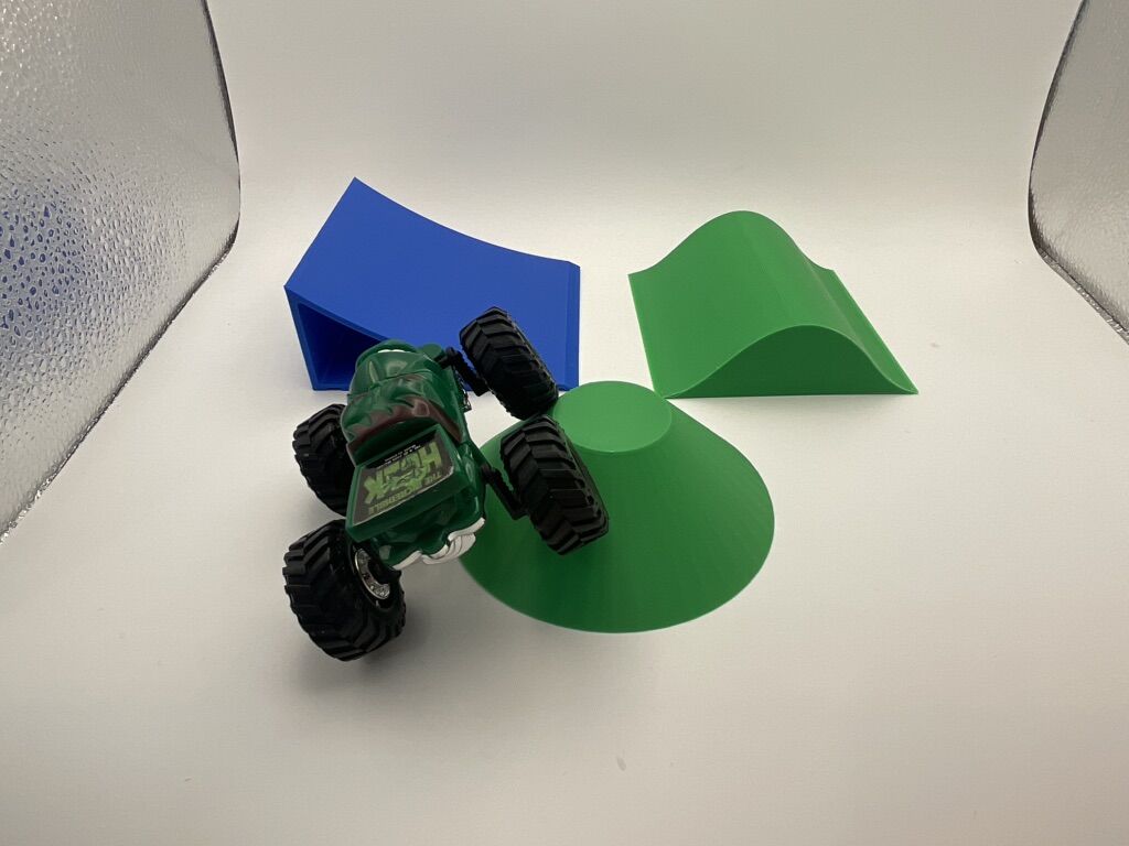 Whether you’re practicing big-air stunts or setting up an obstacle course, this mini monster truck ramp is the perfect launch pad for serious toy action!