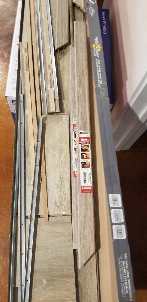 We have over 70 sq ft of LVP flooring 8mm. It is a multi-color tone. Including left over stair nose, and transition pieces. There are 13 full pieces and 8 pieces that have been cut down. The floor is 10 inches x 6 feet lengths. Currently, remodeling and no longer have a use for it.