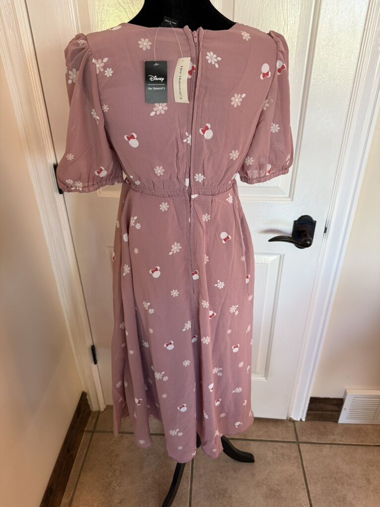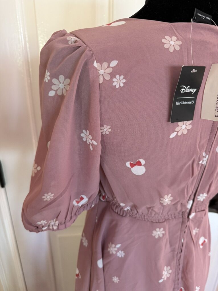 NEW! Disney her universe BHU Minnie Mouse AOP chiffon midi dress Small mauve