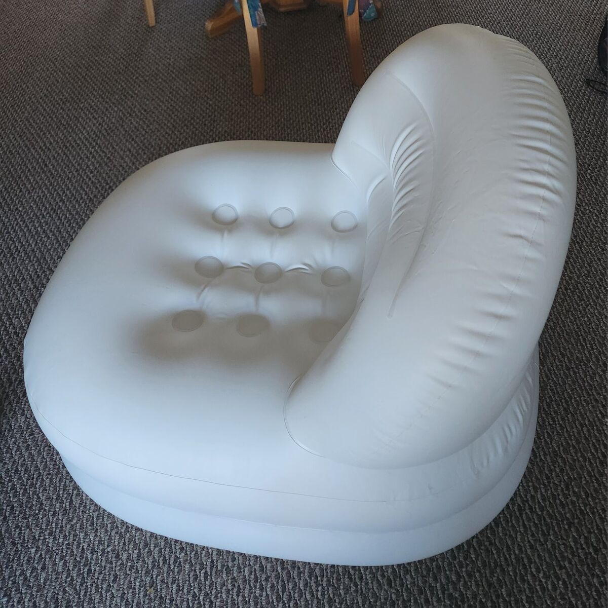 Inflatable PVC white chair, light in weight, sturdy, and very comfortable, can be used in swimming pools for fun, camping, picnics, easy to deflate and store, this is sold on other websites for more than $70.00, asking $10, cash or Venmo.