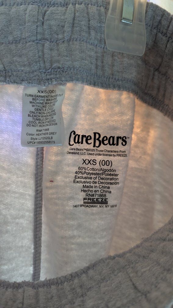 ZelleCare Bears Stitched Graphic Sweatpants XXS (Girls 12) Grumpy and Funshine Bears