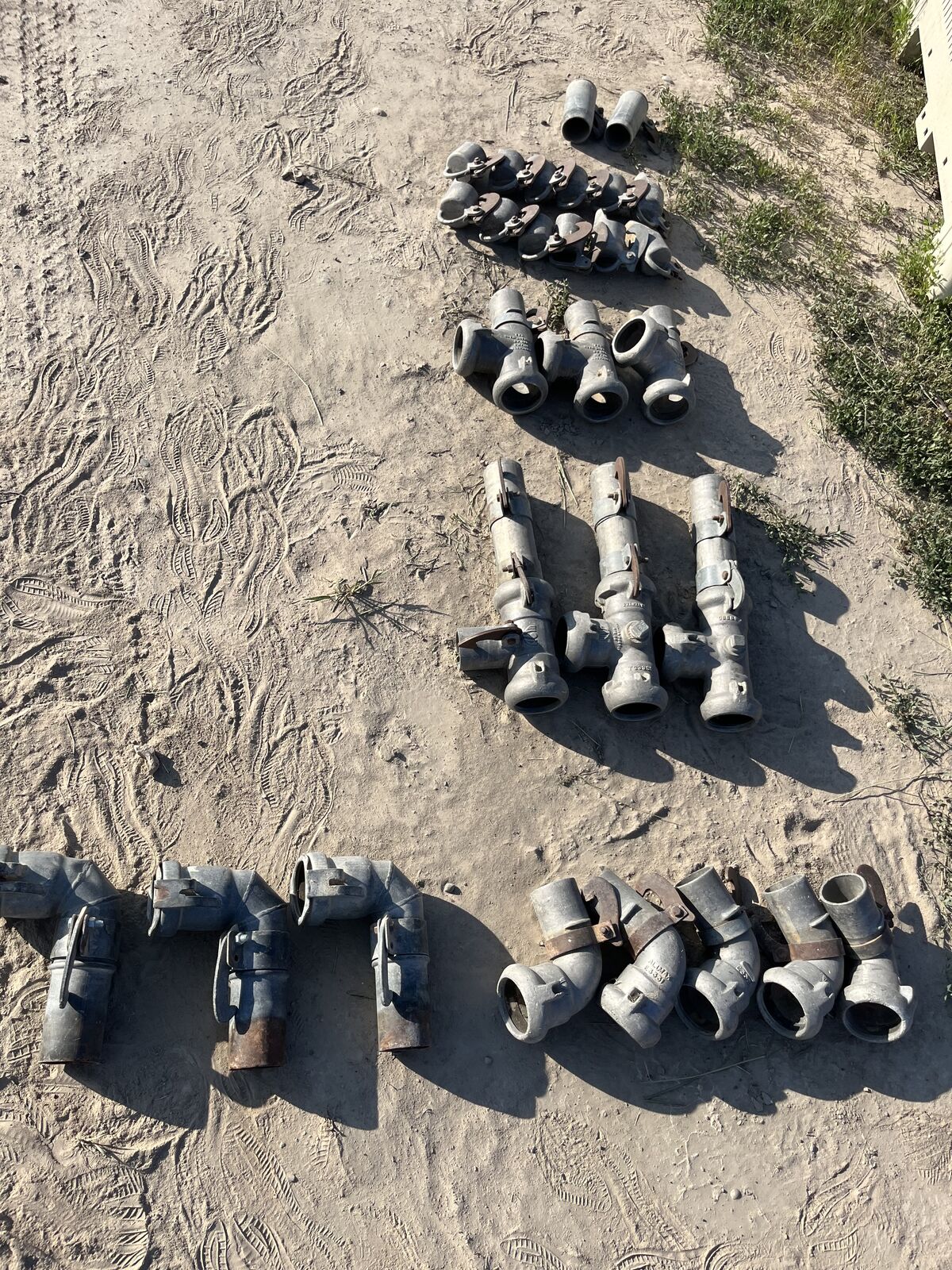 Various T assembly’s, elbows and end plugs for A&M handlines, there is also three metal elbows western style, valve openers are western style. Valve openers were resealed in 2022. All the pieces work with A&M pipe.