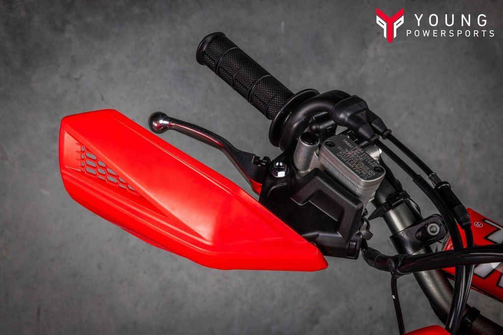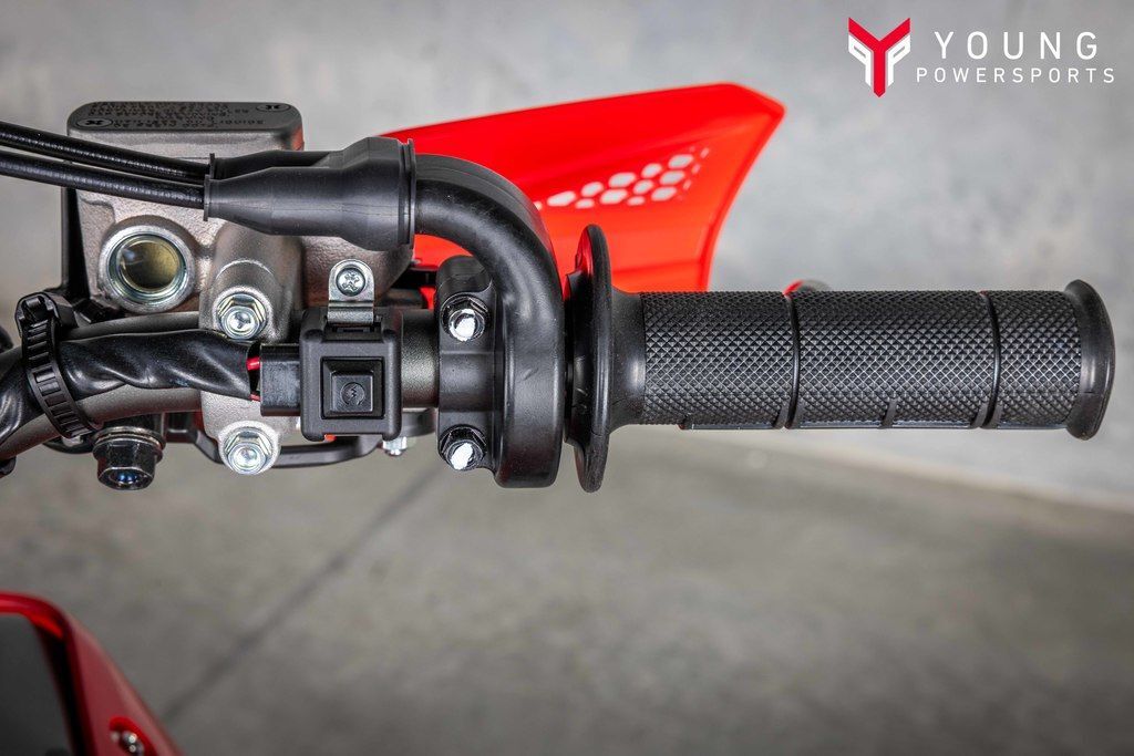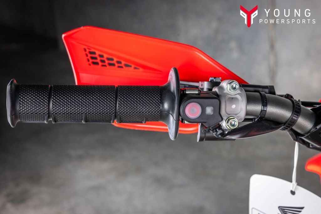 The CRF450RX includes a hydraulically actuated clutch. Made by Nissin, it’s the same design as in our Grand Prix MX machines, and performs better than third-party conversions. You get a clutch-lever pull that’s ten percent lighter at its peak, even though it’s paired with a stronger clutch. Plus, you’ll never have to worry about making a clutch-cable adjustment, even during the longest events.