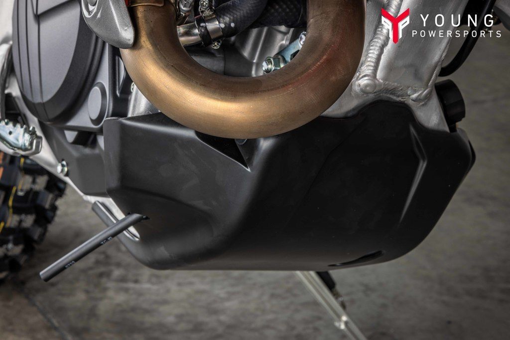 Refinements in both the airbox and air filter streamline airflow and improve throttle control and feel, especially in tight turns. You access the airbox through the left number plate, and because the CRF450RX’s filter has no rubber gasket where it interfaces with the intake boot, cleaning and servicing the filter is faster and less messy than ever.