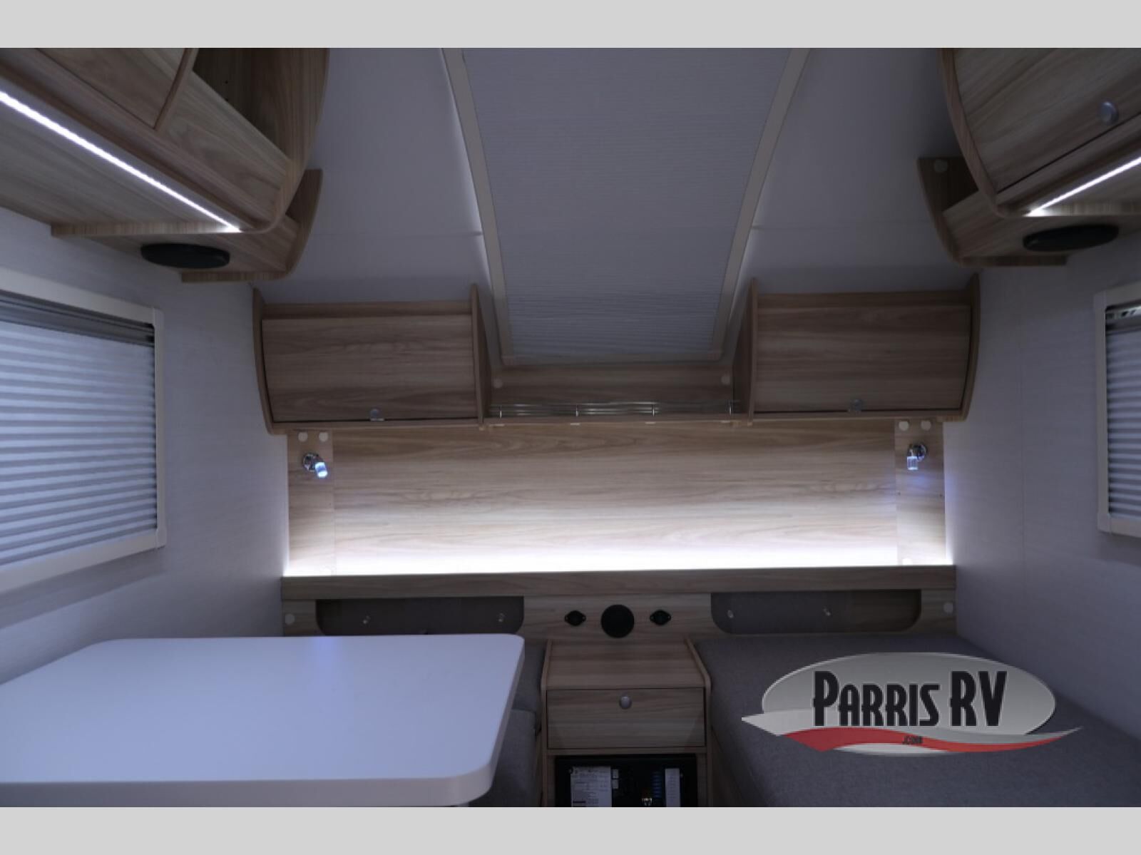 You're going to love camping in this teardrop clamshell trailer! Once you arrive at the campground, you can make lunch on the exterior rear hatch kitchen. There is a two burner glass-top stove and a 45L 12-volt cooler here to quickly make lunch and grab a cold drink. The interior 5 cu. ft. 12-volt compressor refrigerator will provide more food storage, and an optional microwave can be added inside for the option to heat up quick meals indoors. You're sure to get a great night's rest on the twin-size bed, and the booth dinette can convert to a second twin-size bed so you can sleep two comfortably. The optional Black Canyon Upgrade can be added that includes a solar upgrade to dual 190W panels, holding tank heaters and underglow lights. And if you're in the market for a more traditional touring style, the optional Classic Touring Edition may be perfect for you; the Black Canyon Upgrade is not available with this package.