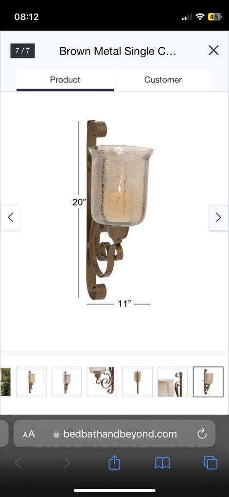 VenmoMetal, brown/copper wall candle holder. These are new. I have TWO of them that I never used. Still in the box in the wrapping. They are 11 x 7w x 20h. Both for 20.