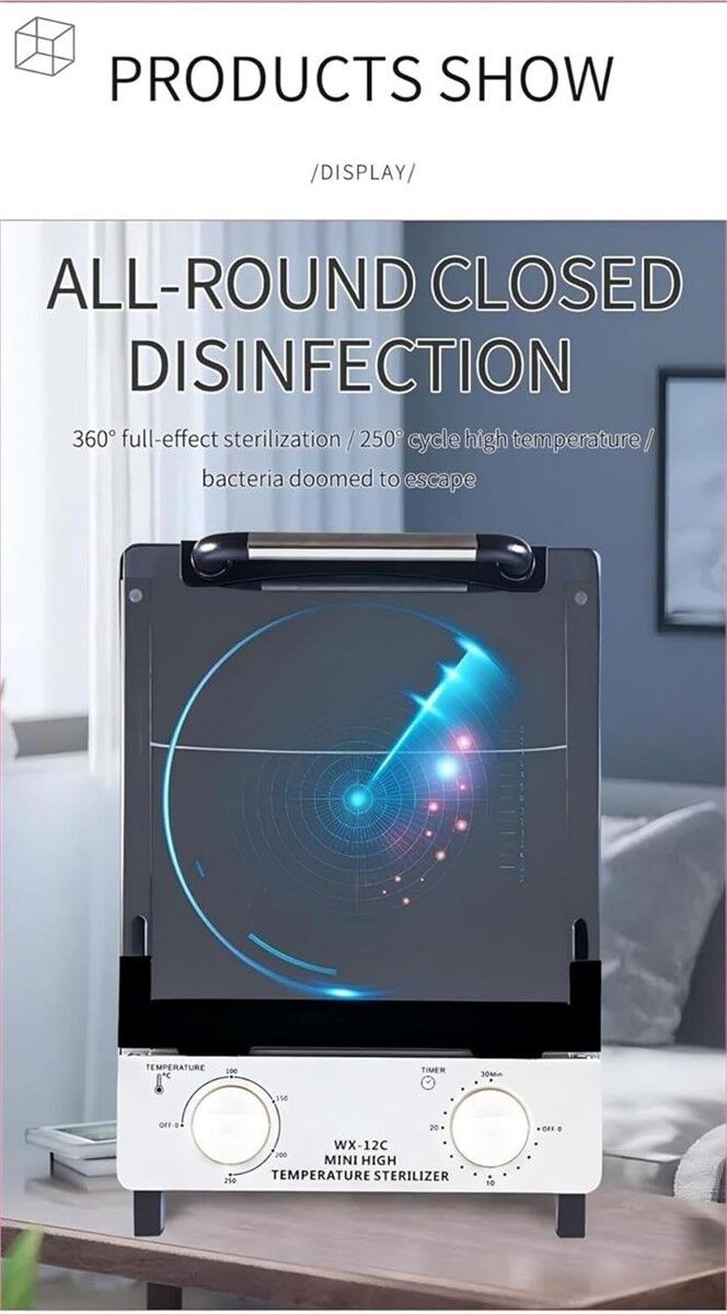 VenmoHigh-Temperature Sterilization : The 12L High Temperature Sterilizer utilizes advanced high-temperature technology to thoroughly disinfect nail tools, utensils, towels, and more, providing a safe and hygienic environment for both professional and personal use. Customizable Temperature & Timer Settings : Equipped with four adjustable temperature levels (100 /150 /200 /250 ) and a timer ranging from 0 to 30 minutes, this sterilizer allows you to tailor the cleaning process to suit different tools and items, ensuring optimal results. Durable Stainless Steel Construction : Built with high-quality, anti-rust stainless steel, the sterilizer is designed to withstand commercial usage and heavy-duty conditions, offering long-lasting performance in busy environments. Rapid Heating & Efficient Insulation :Efficient high temperature cleaning machine to heat up rapidly in 5s and have effective thermal insulation Convenient Stainless Steel Trays : Includes removable stainless steel trays, perfect for organizing and sterilizing multiple items at once, making it easy to manage your cleaning tasks in one go. Retail Price: $80 Notes: Item does heat up and the timer works however Item has a dent in the rear wall and the door is misaligned. See all photos. Condition: New - Cosmetic Flaws Damaged?: Yes Damage Description: Item does heat up and the timer works however Item has a dent in the rear wall and the door is misaligned. See all photos. In Packaging?: Yes Missing Parts?: No ASIN: B0DDBQ3PY2 FNSKU: X004D2FMY1 Functional?: Yes #447 6-7-25 00.5
