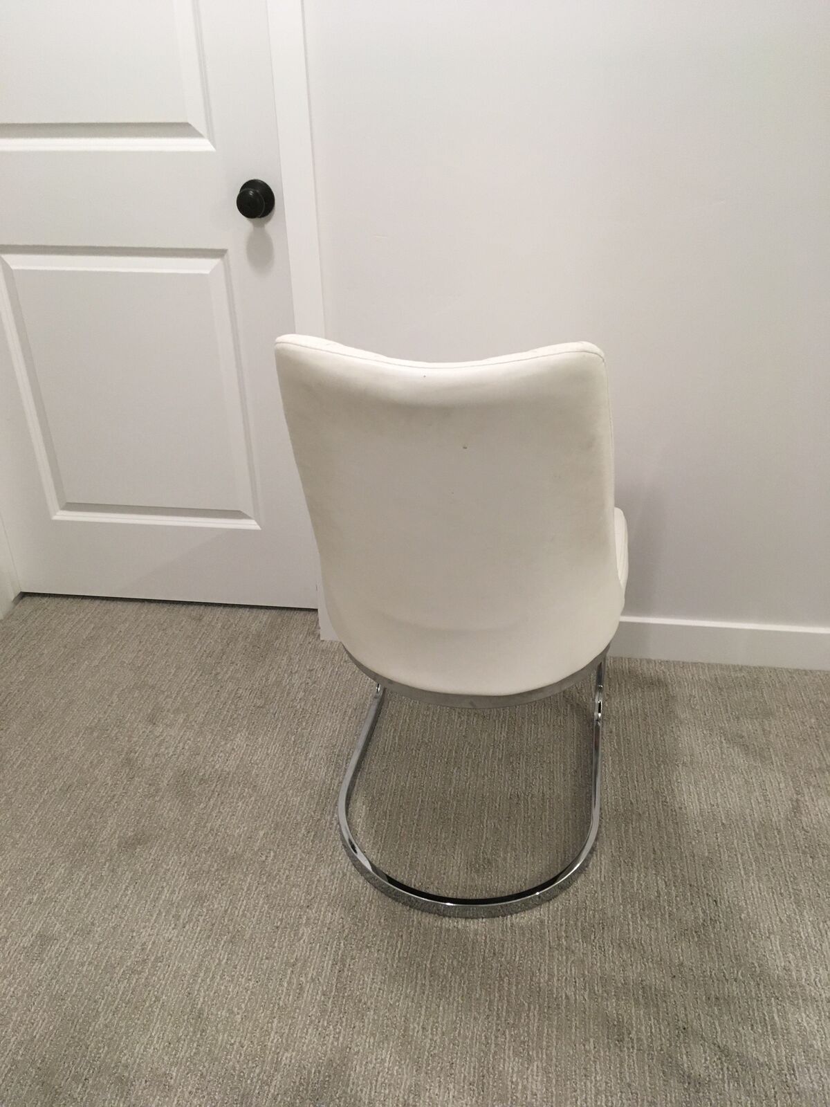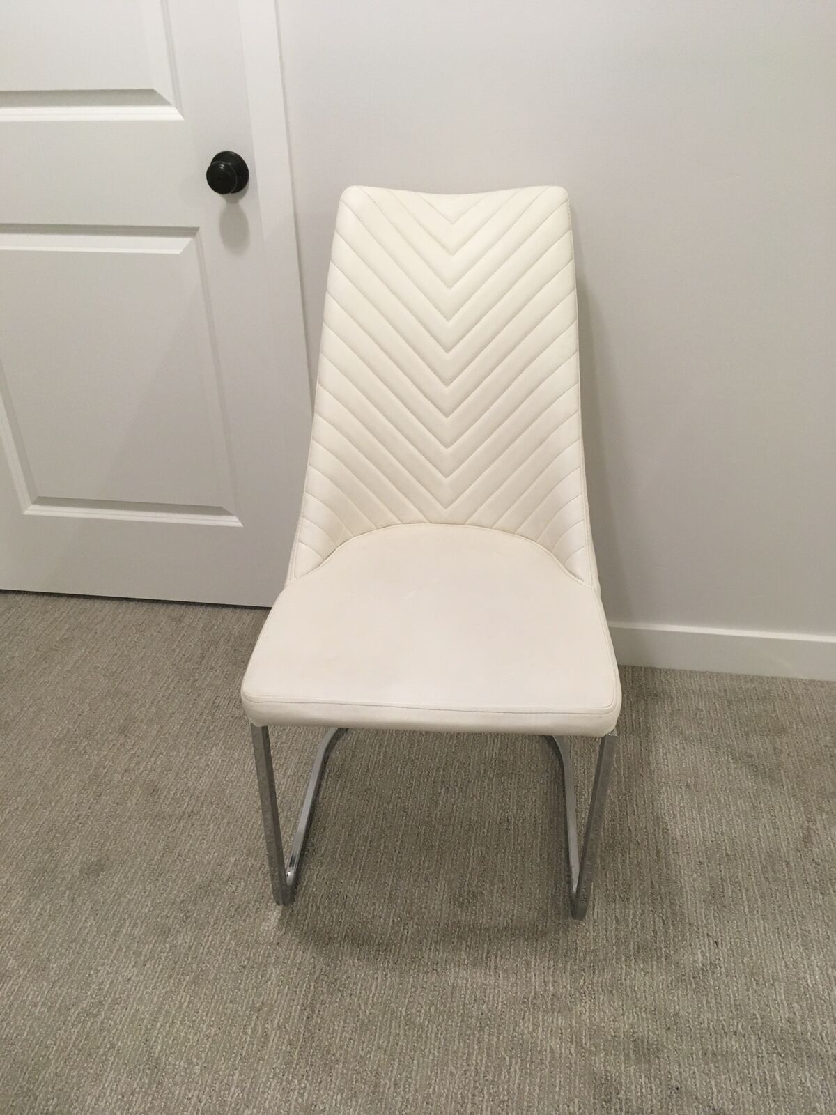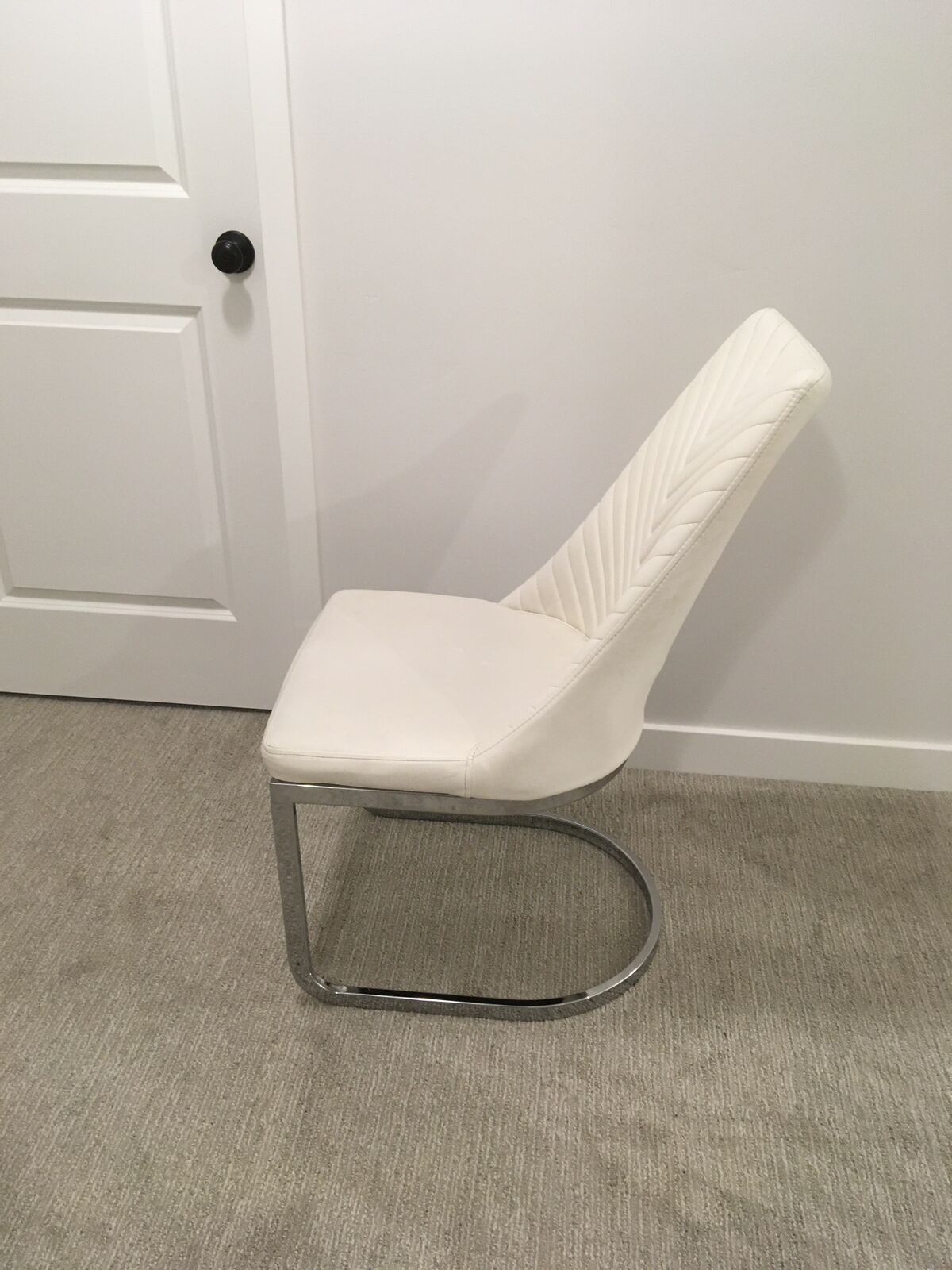 Padded, very comfortable. White top. Chrome legs.