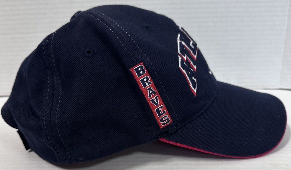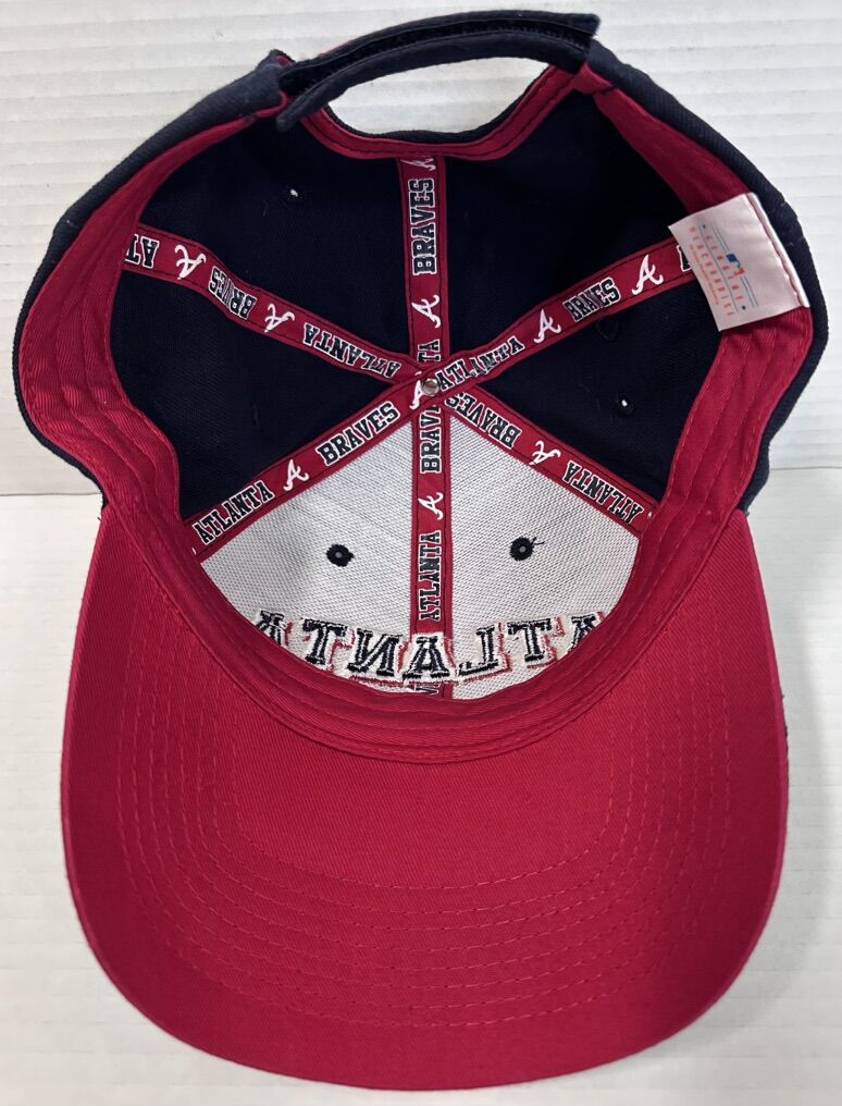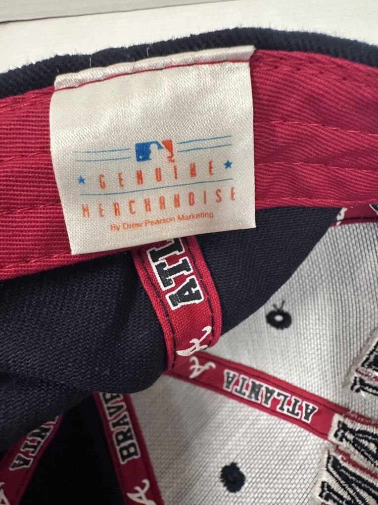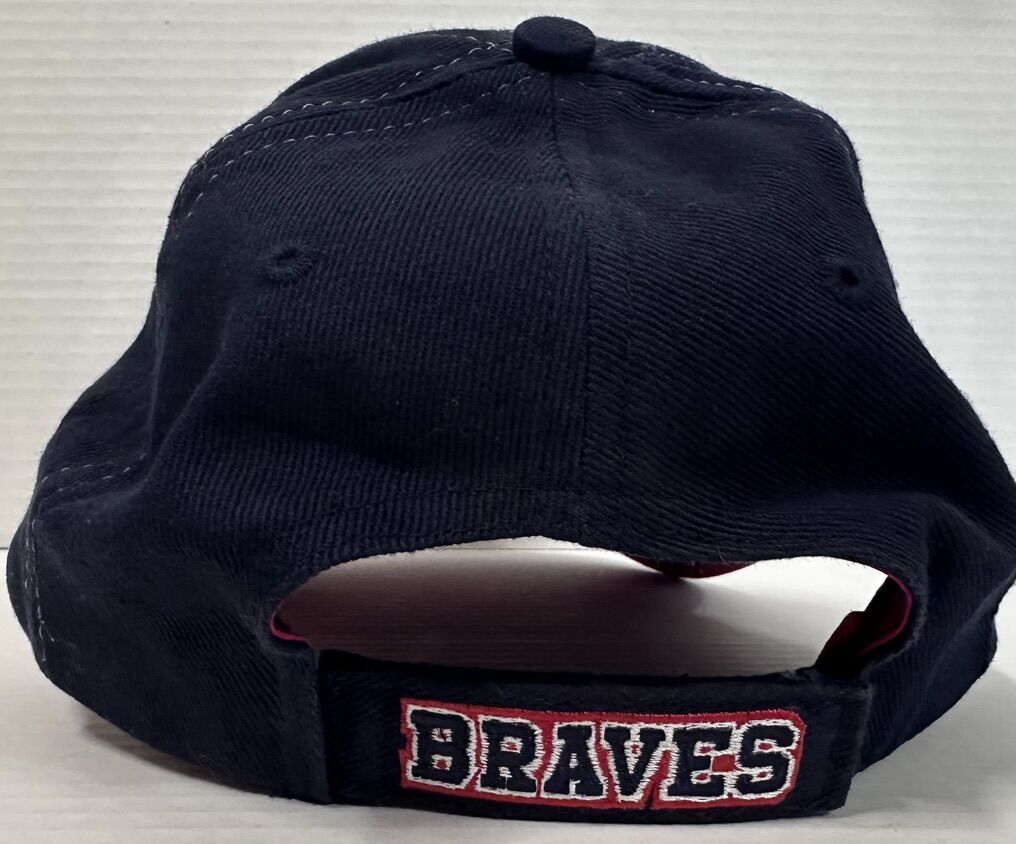 The Vintage Atlanta Braves MLB by Drew Pearson Adjustable Hat is an officially licensed cap featuring the iconic Atlanta Braves team logo. This unisex adult hat in blue showcases the Major League Baseball league and is perfect for fans looking to represent their favorite baseball team during the regular season. With a one-size-fits-all design, this hat is a must-have accessory for any Atlanta Braves supporter.