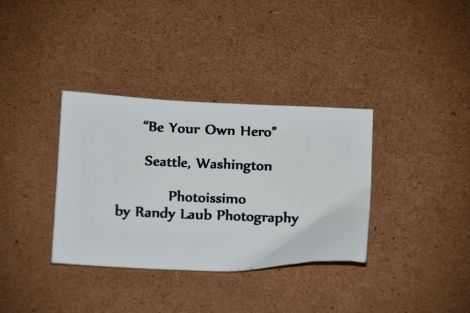 This "BE YOUR OWN HERO" PHOTOGRAPH by RANDY LAUB PHOTOGRAPHY is about 18" x 22" FRAMED. Our home is smoke free. Questions??? Please ask. We are located in Plain City. Cash only please.