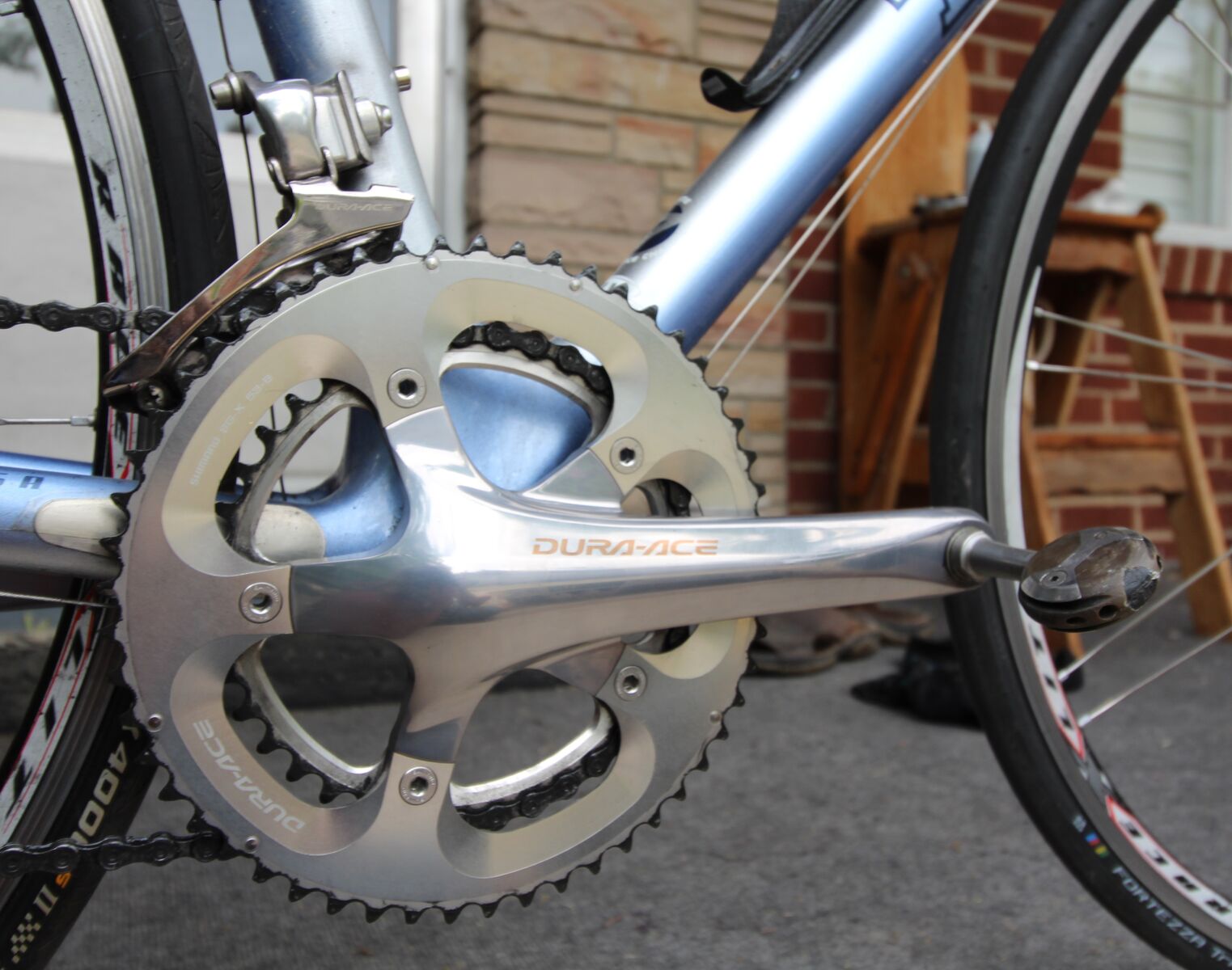 No pedals shown in the pics but I have a few different options available if needed... Shimano SPD, SPD-SL, Speedplay, LOOK, etc. Just ask if you need.