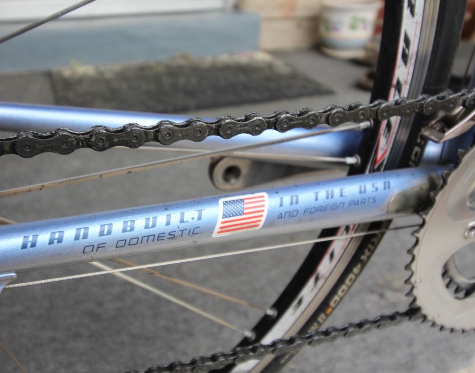 The paint on this bike is gorgeous. It's a Klein-esque light metallic silver to sky blue chameleon fade with a little purple undertone to it that shimmers and changes color subtly in different light. Very unique but also very subtle.